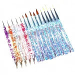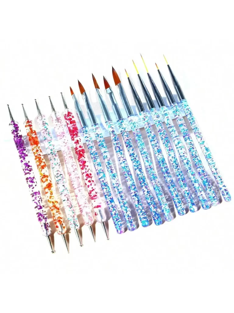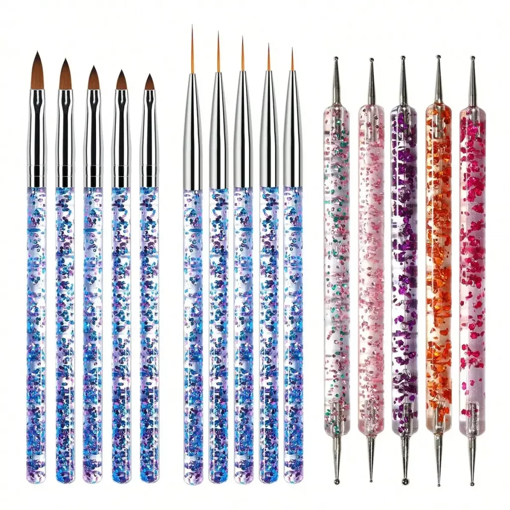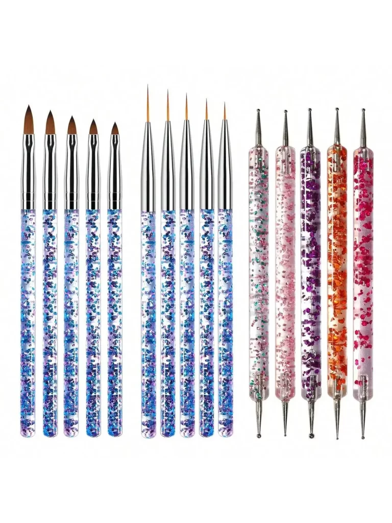 15 kusů manikúrních štětců různých typů pro nanášení gelu, akrylu, laku a detailní zdobení