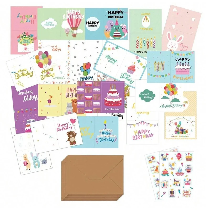 S tímto balením narozeninových přání hravě vyřešíte každý svátek i narozeniny. Nemusíte běhat po obchodech a hledat originální přání k narozeninám, vše máte připravené doma. Díky samolepkám a místu pro vlastní text vytvoříte jedinečné narozeninové karty, které potěší děti i dospělé.