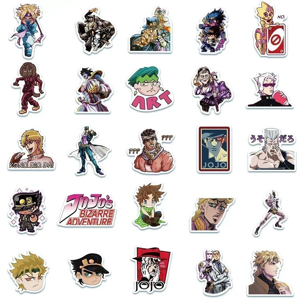 Se sadou anime samolepek z oblíbeného světa jojo bizarre adventure získáte možnost rychle a jednoduše ozdobit své věci. Díky nim už nemusíte řešit nudný vzhled a starost s obtížnou aplikací. Tento set přináší snadné řešení, jak mít originální design na každém kroku.