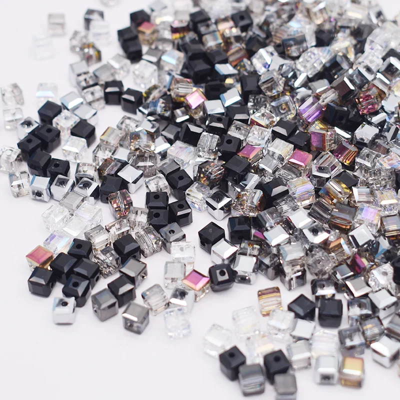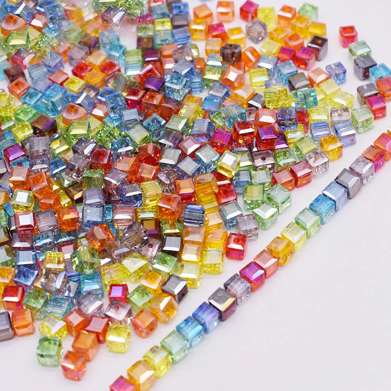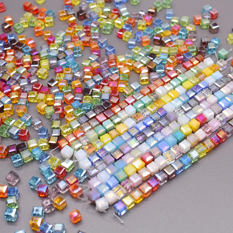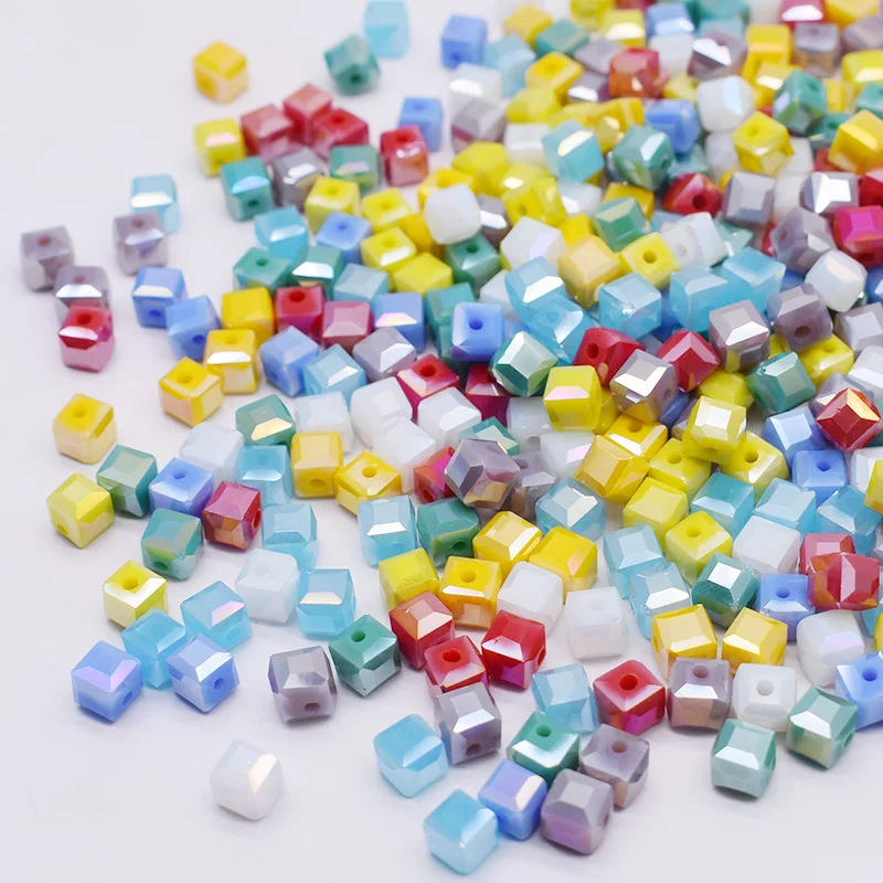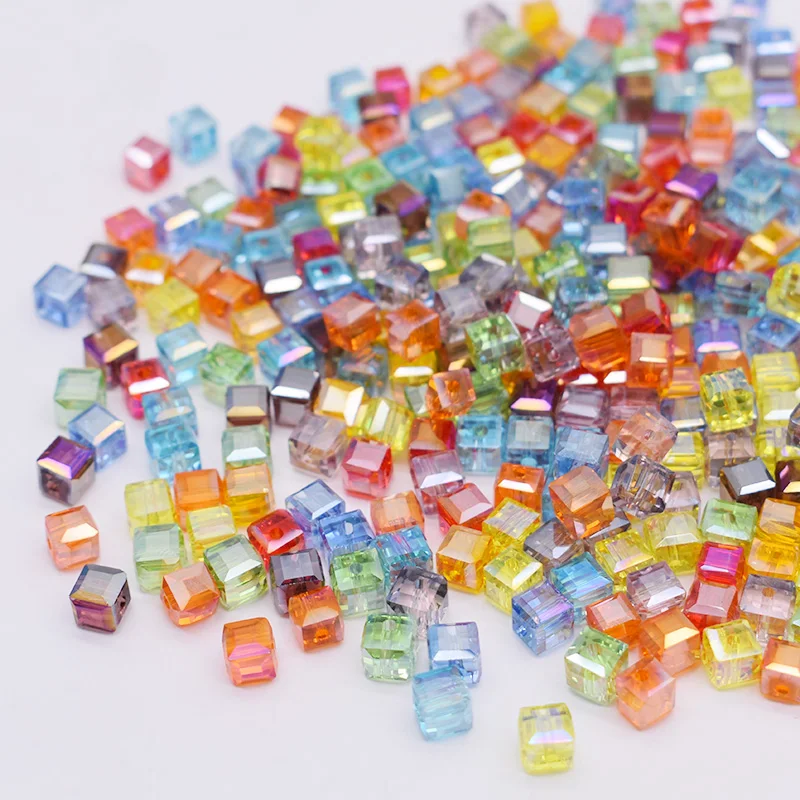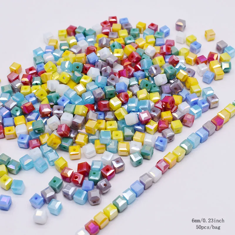 45–50 ks barevných fasetovaných kostkových skleněných korálků 6mm