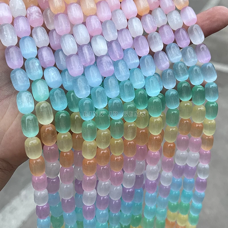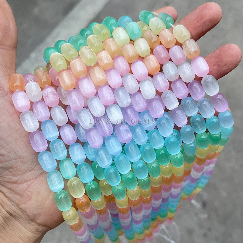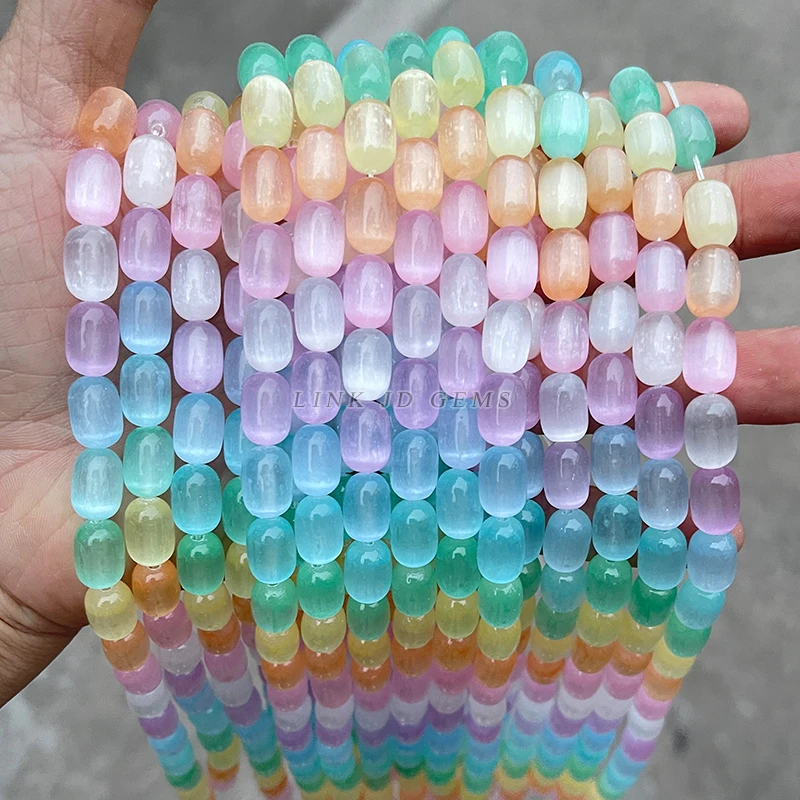 Tyto barevné selenitové korálky přinášejí do vašich šperků nádherné odlesky a harmonii. Díky hladkému povrchu a jemnému lesku už nebudete řešit matné či obyčejné doplňky. Dodají náramkům i náhrdelníkům originální vzhled a umožní vám tvořit bez omezení.