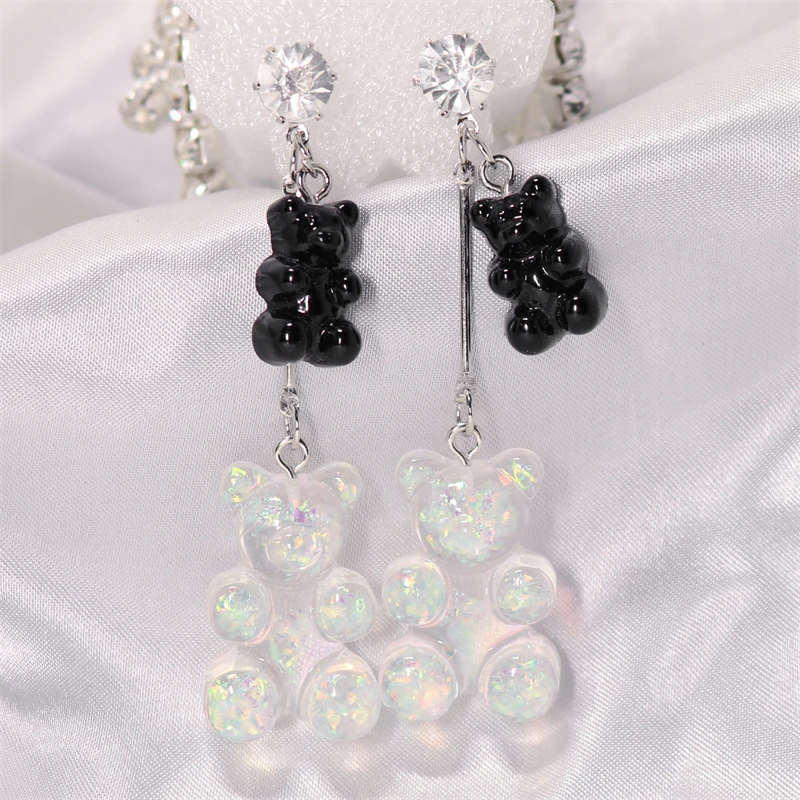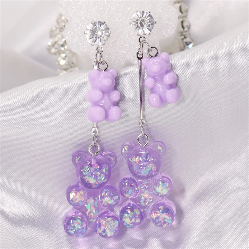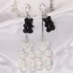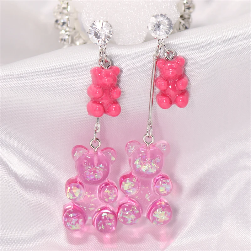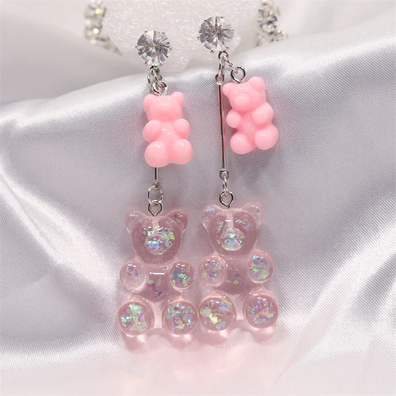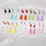 1 pár barevných visacích naušnic ve tvaru medvídka
