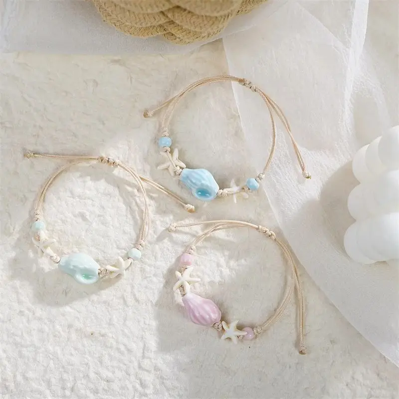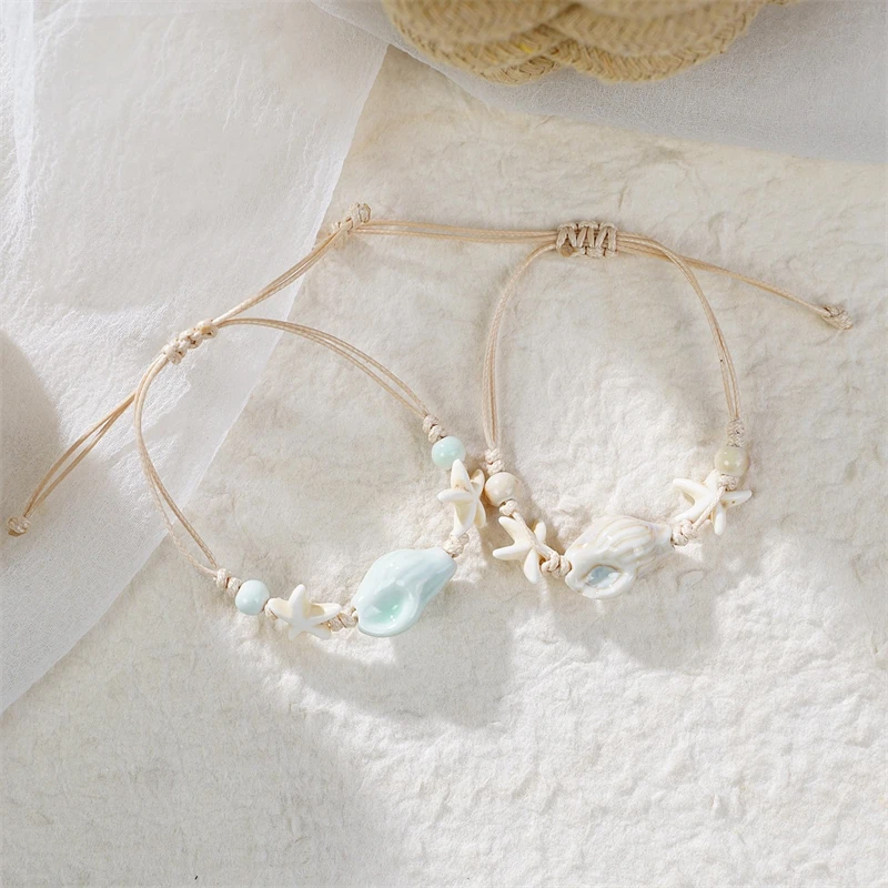 1× barevný keramický pletený náramek s hvězdicovým přívěskem v sáčku OPP