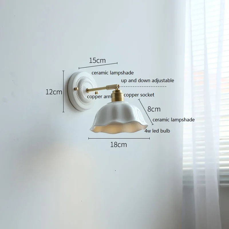 Tato bílá keramická nástěnná měděná lampa pomůže vyřešit slabé osvětlení u postele, v chodbě i v obýváku. Díky otočnému stínidlu nemusíte řešit nepříjemný směr světla ani zbytečně zaplněný stolek. Elegantní vzhled a úsporné svícení z ní dělají skvělý doplněk pro každý den.