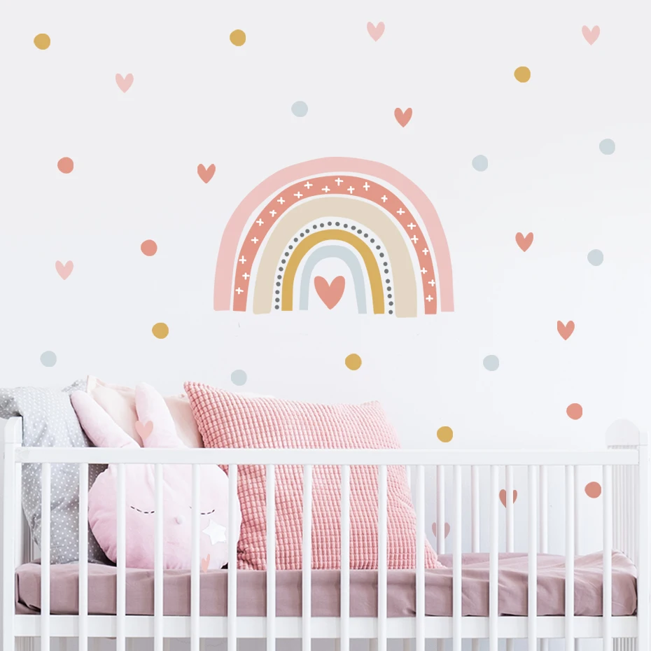 Chcete rychle a snadno proměnit dětský pokoj v pohádkové místo? S těmito dětskými samolepkami vytvoříte útulnou atmosféru plnou barev a radosti během pár minut. Už žádné složité malování nebo tapetování – stačí jednoduše nalepit a hotovo! Samolepky jsou ideální pro každou holčičku, která miluje něžné motivy duhy a srdíček. Navíc je můžete kdykoliv snadno sundat nebo přemístit, takže žádné obavy z poškození stěn.
