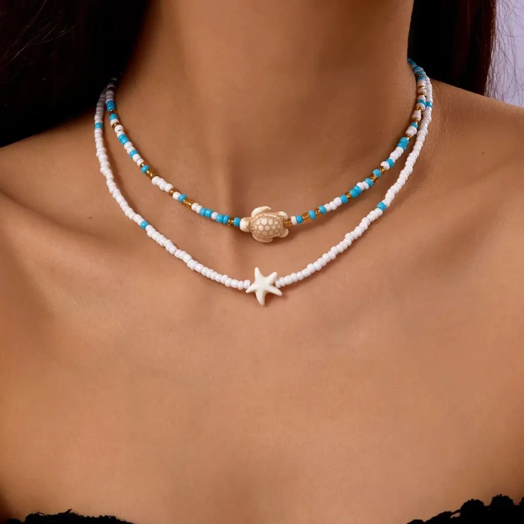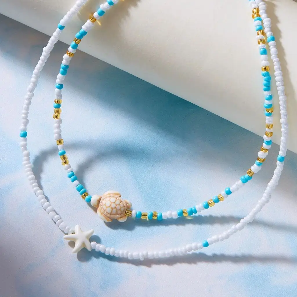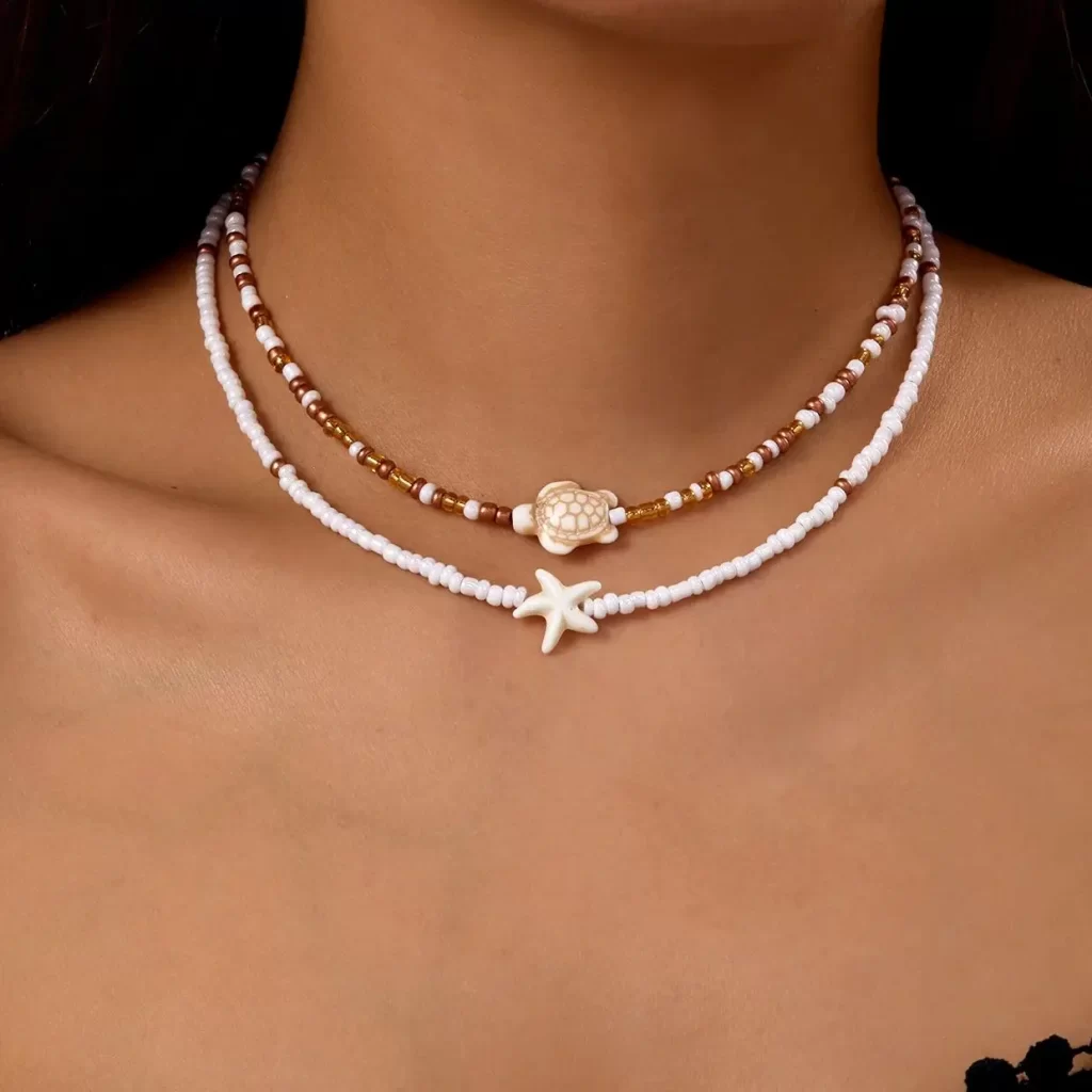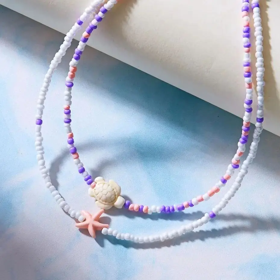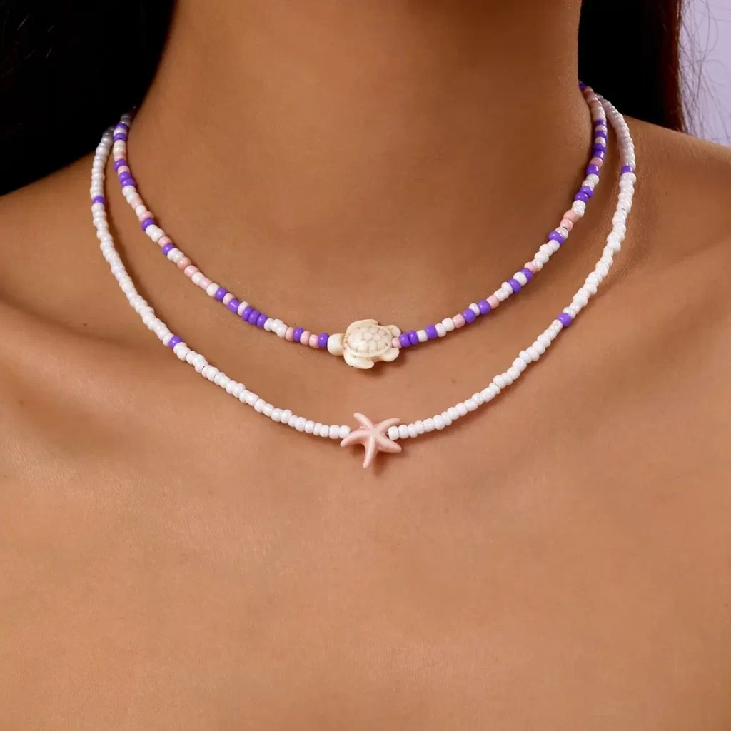 Barevné korálky a jemné přívěsky ve tvaru hvězdice a želvy dodají vašemu outfitu hravost i eleganci. Náhrdelník pro ženy řeší problém s hledáním letního šperku, který je lehký, stylový a příjemný na nošení. Díky němu nemusíte řešit, co si vzít k šatům nebo topu. Boho náhrdelník je ideální na dovolenou, do města i jako dárek.