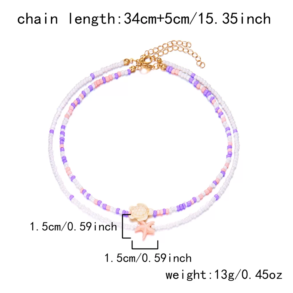 Chcete nosit boho náhrdelník, který vypadá skvěle u moře i ve městě? Barevné korálky a jemné přívěsky ve tvaru hvězdice a želvy dodají vašemu... Více informací ...