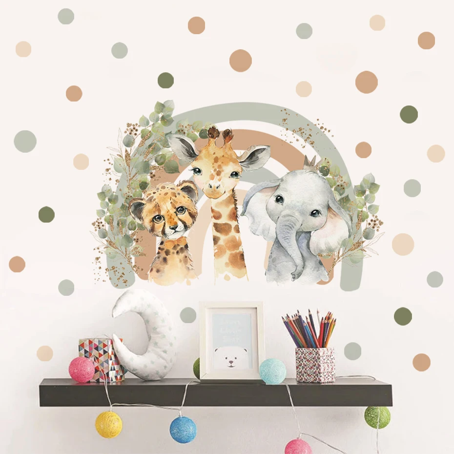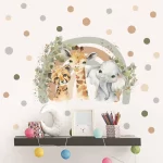 Vytvořte harmonizující prostředí pro vaše dítě pomocí této krásné boho samolepky s motivem žirafy a slona v jemném akvarelovém stylu. Už žádné nudné stěny! Díky samolepce snadno oživíte dětský pokoj a vykouzlíte útulné místo pro hraní i odpočinek. Instalace je rychlá a jednoduchá – stačí sloupnout a nalepit. Bez zbytečného vrtání a nepořádku!