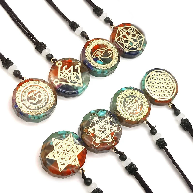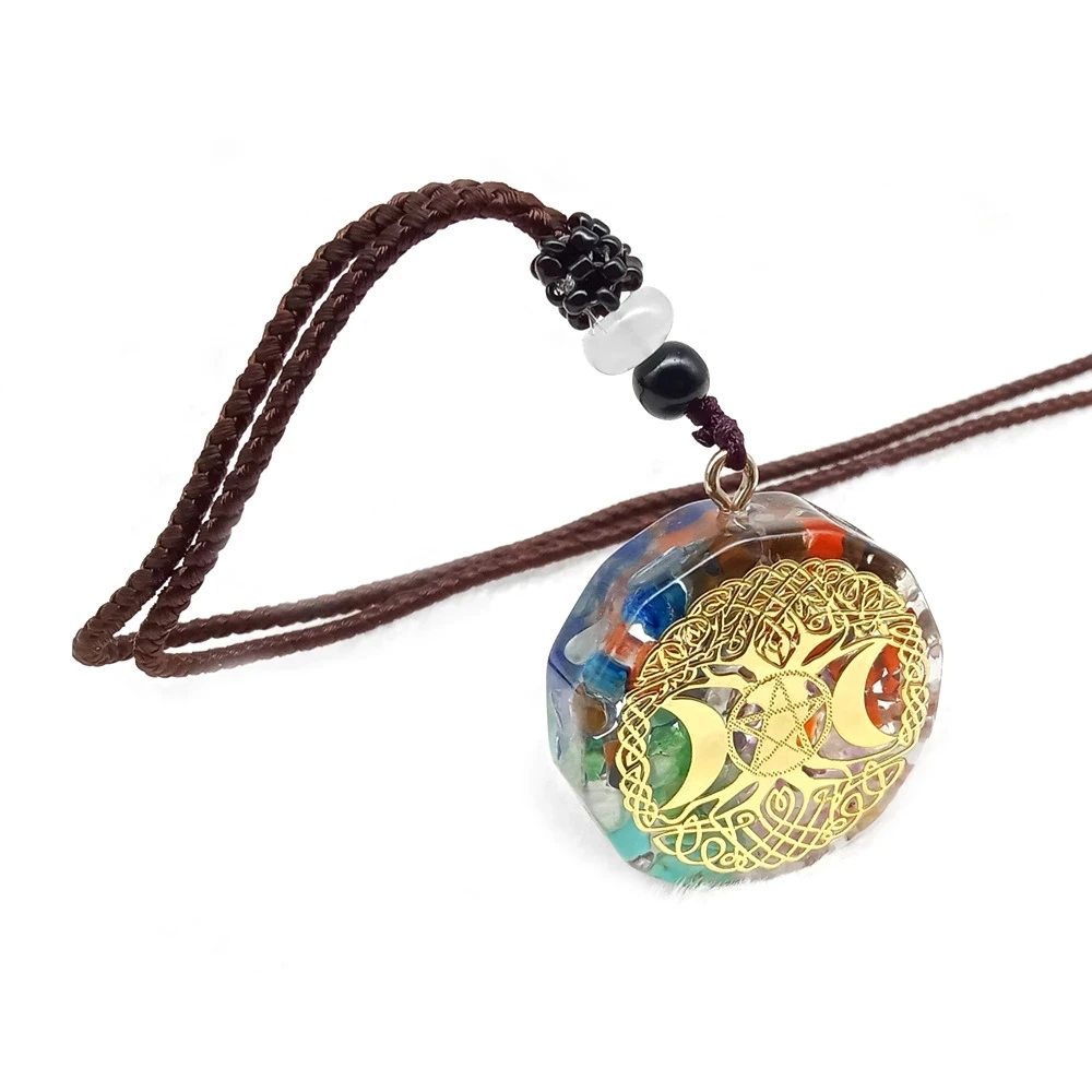 1× čakrový energetický náhrdelník orgonit s přívěskem a lněným řetízkem