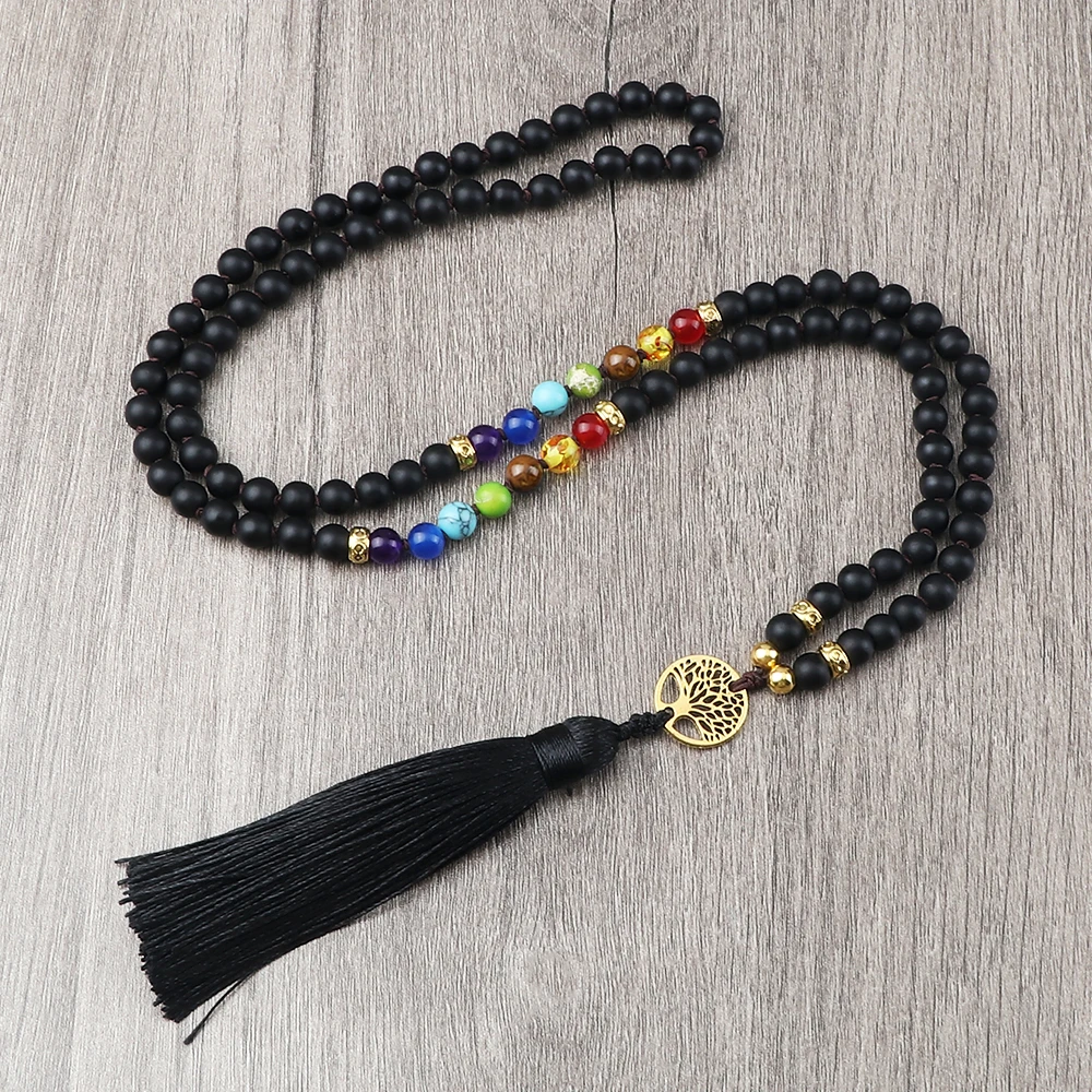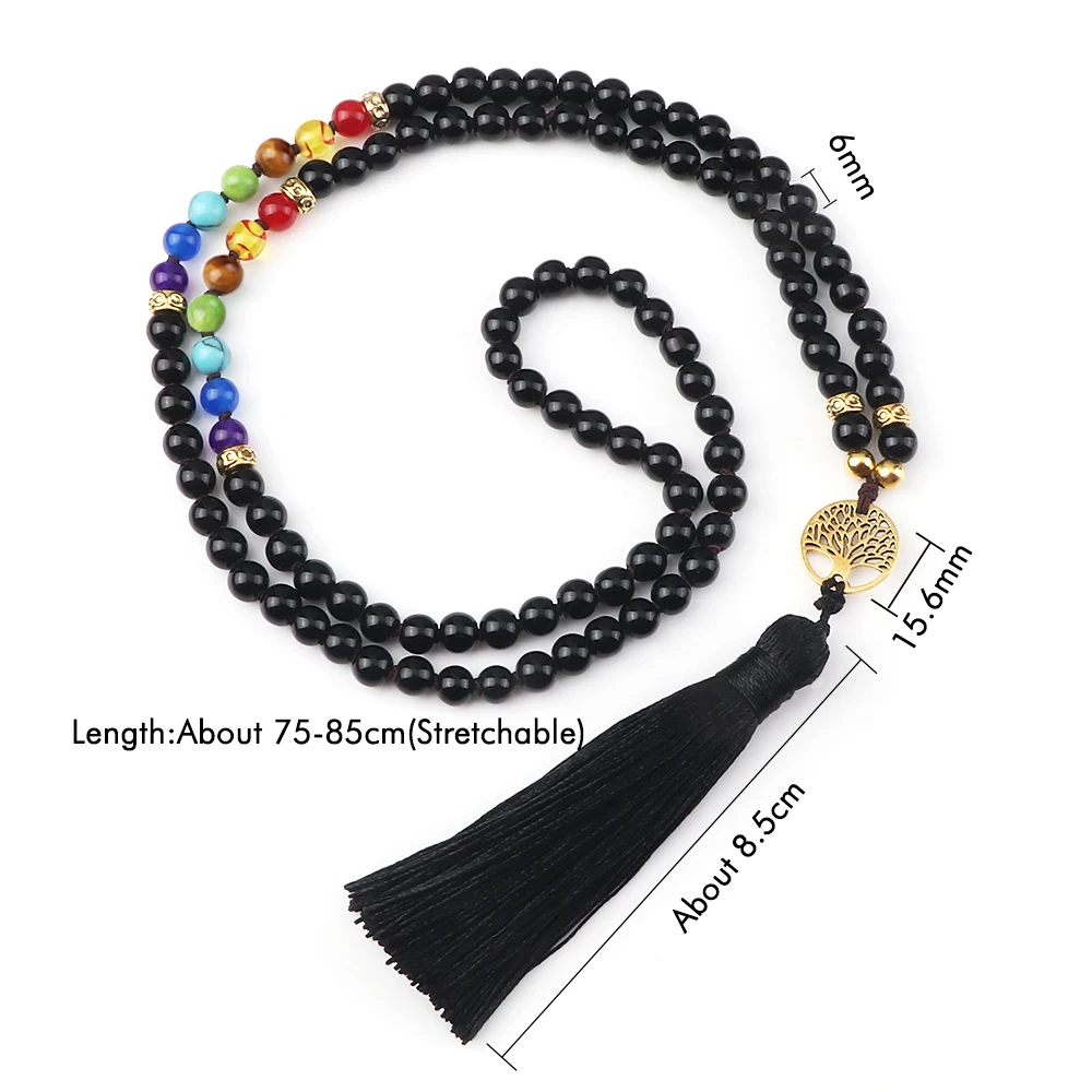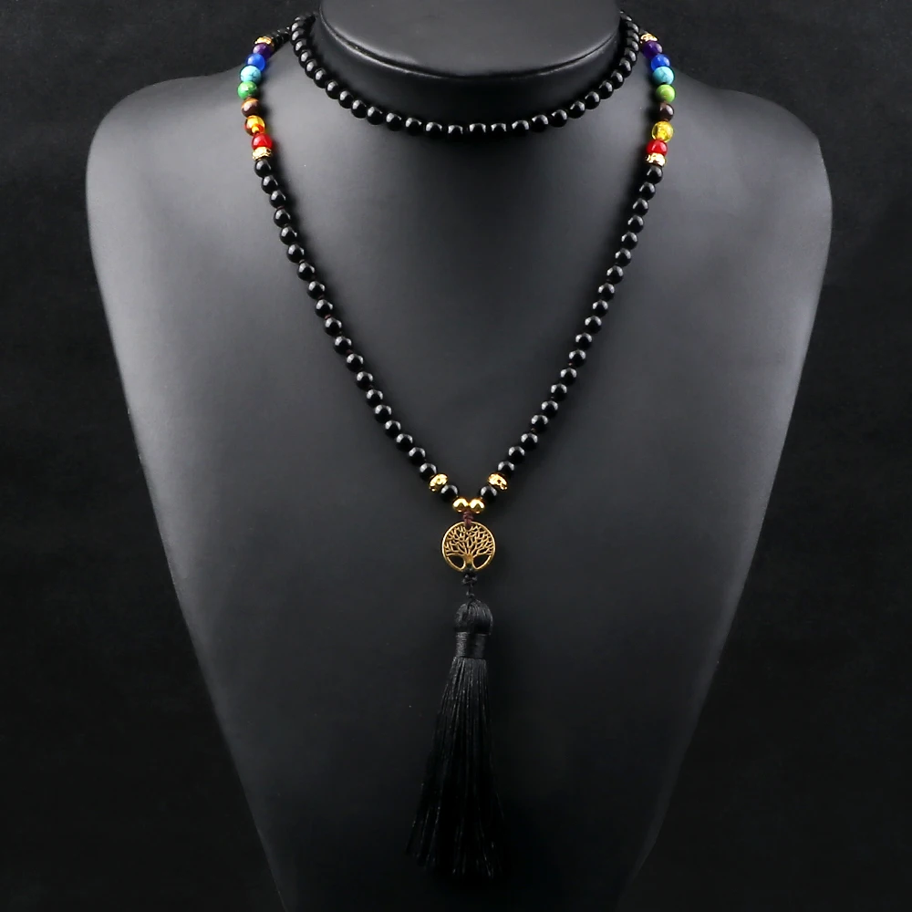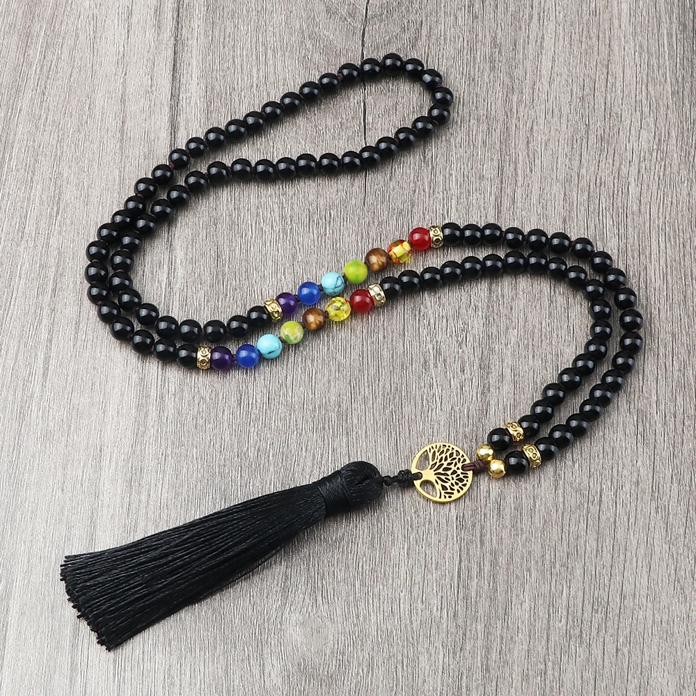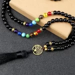1x Čakrový náhrdelník s černým onyxem a stromem života