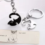 1 pár klíčenek – černá kočka a srdce s řetízkem