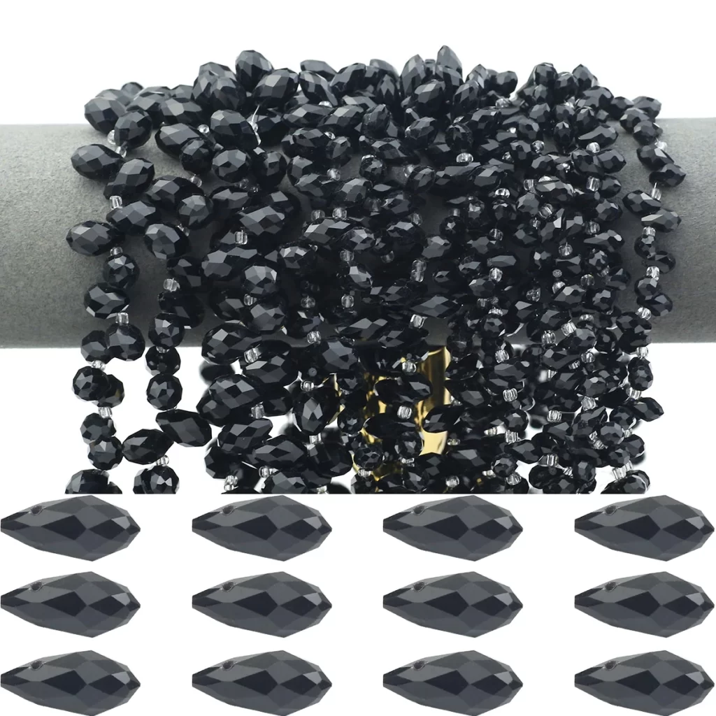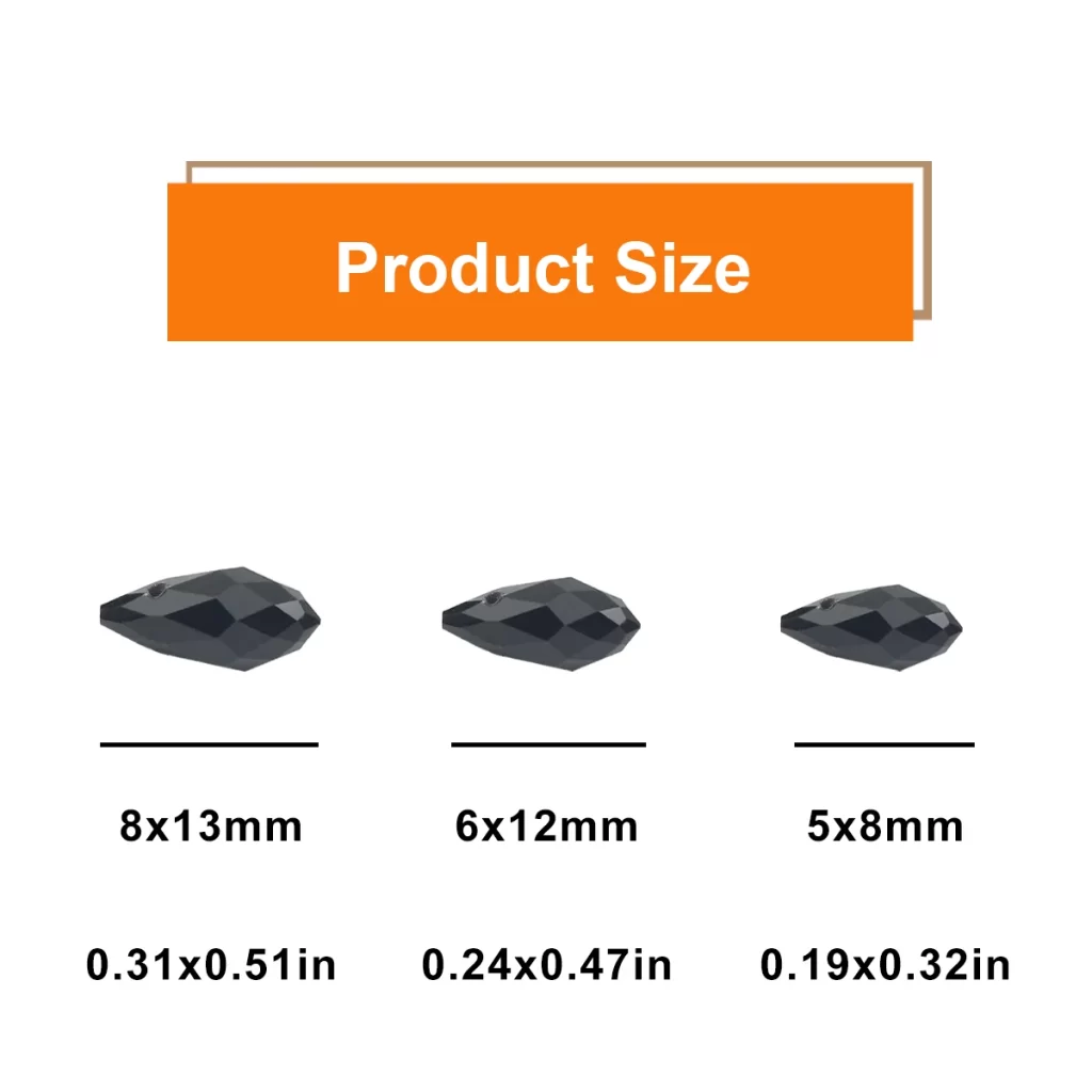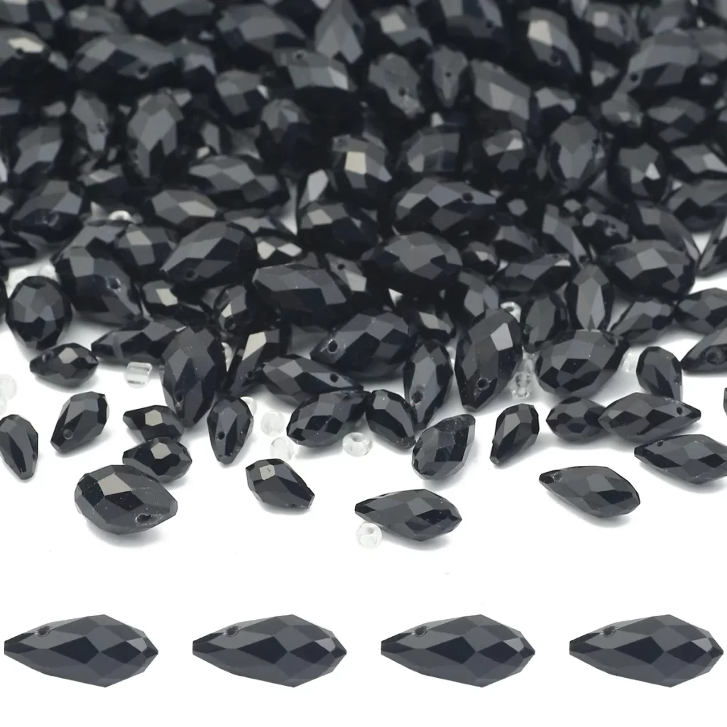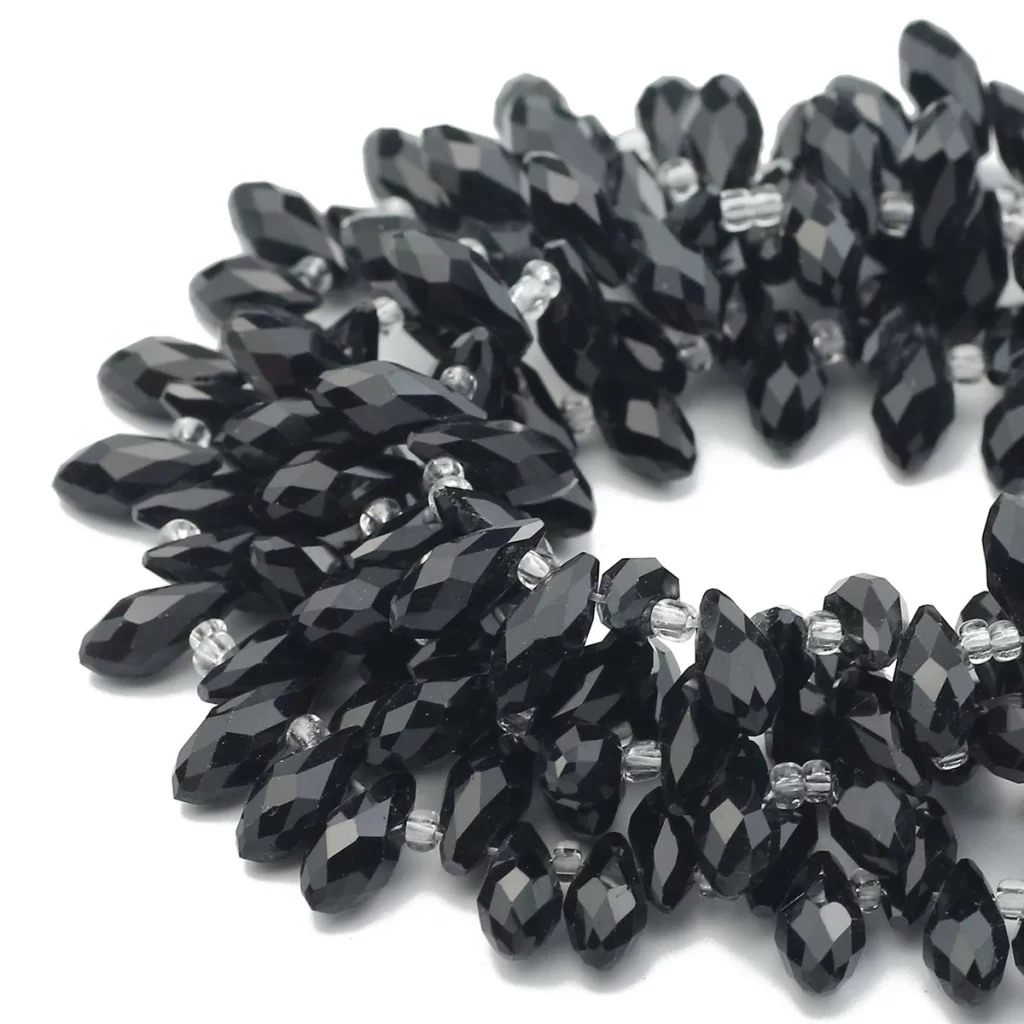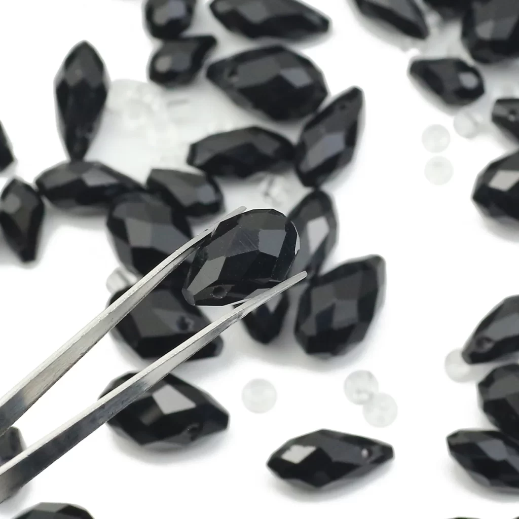 Černé korálky ve tvaru kapky rozzáří každý projekt. Tyto skleněné korálky jsou ideální jako korálky na náramky i korálky na náušnice. Díky preciznímu broušení se krásně třpytí a snadno se navlékají, takže nemusíte řešit matný vzhled ani složitou práci při tvoření.