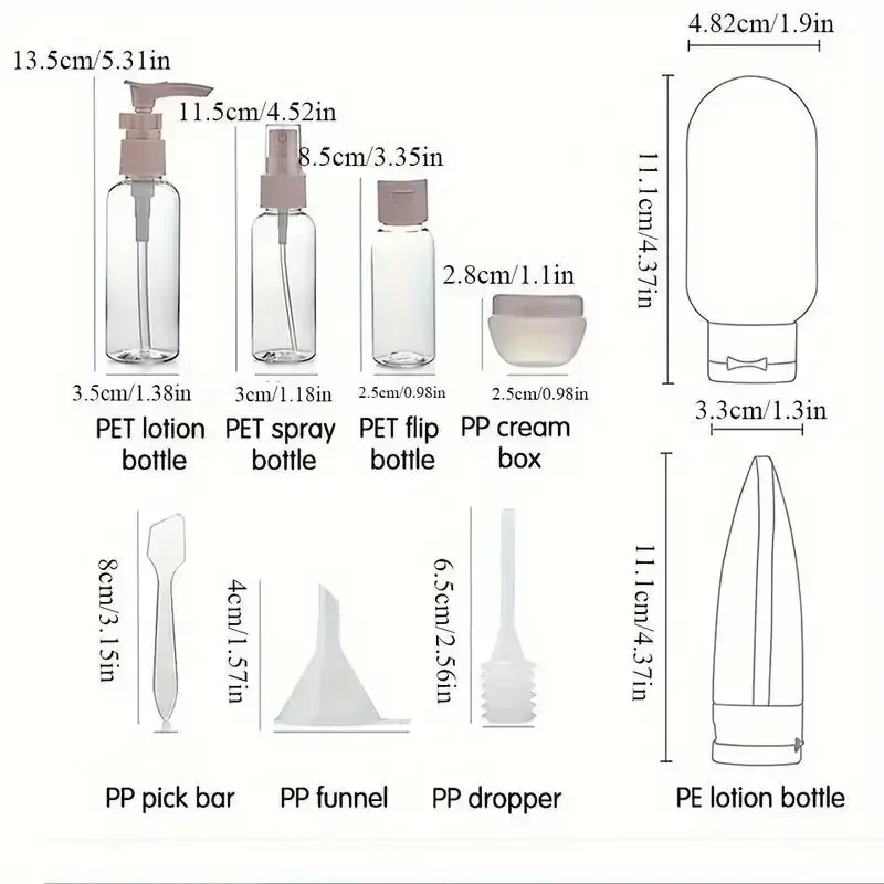 Cestovní sada lahviček vám umožní mít vaše kosmetické lahvičky stále po ruce bez obav z přelití nebo zbytečné zátěže. Díky této sadě už nebudete muset řešit, jak převážet šampon, parfém nebo sprchový gel, a zároveň se vyhnete zbytečnému kupování cestovní kosmetiky. Řešení pro pohodlné cestování bez starostí s obsahem vašeho zavazadla.
