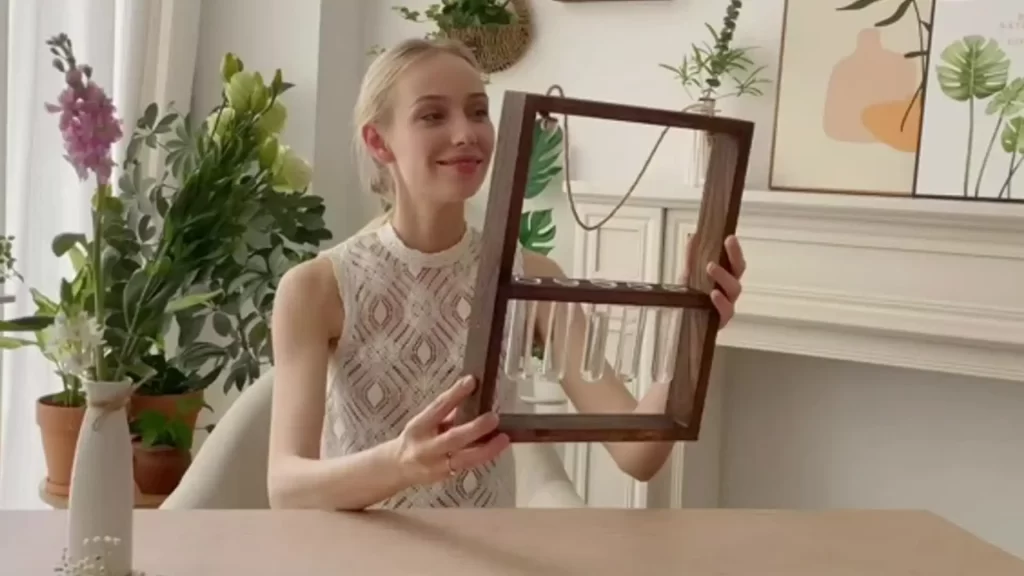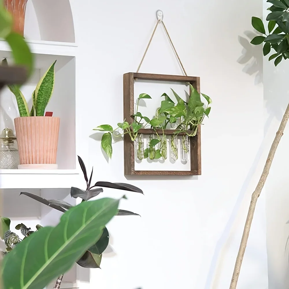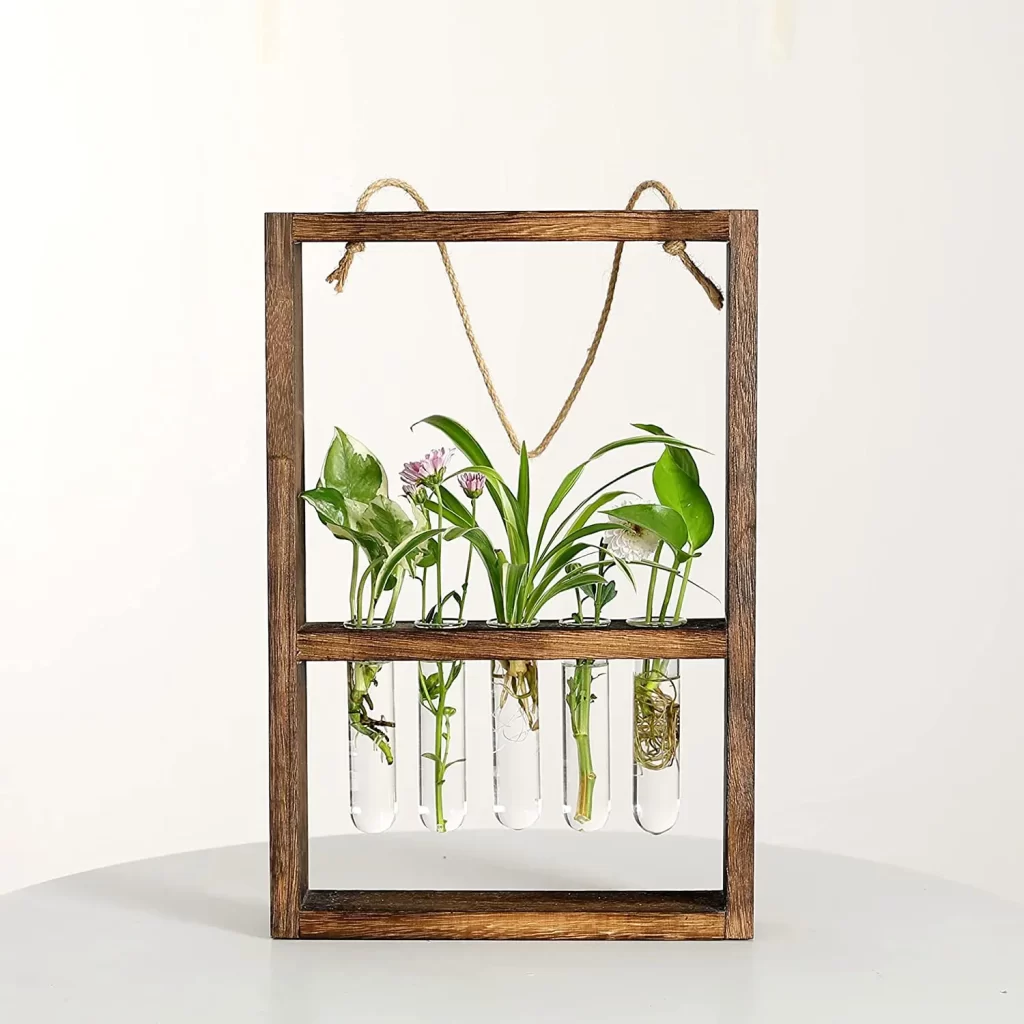 Tato nástěnná váza pomůže oživit prázdnou zeď, vystavit květiny bez zabírání místa a vytvořit útulnější domov. Díky spojení dřeva a skla získáte pěkný detail do bytu i na oslavu. Skleněná váza na květiny je přehledná, snadno se čistí a krásně ukáže i menší řízky nebo poupata.