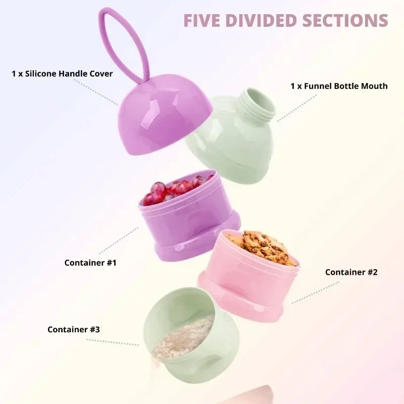 Praktická dóza s třemi oddělenými přihrádkami vyřeší chaos při přípravě výživy i svačinek na cestách. Díky kompaktnímu designu už nebudete hledat pytlíky s práškem nebo drobky v tašce. Ušetří vám čas, prostor a nervy při každém krmení. Ideální pomocník pro maminky, které chtějí mít vše přehledně uspořádané a připravené během pár sekund.