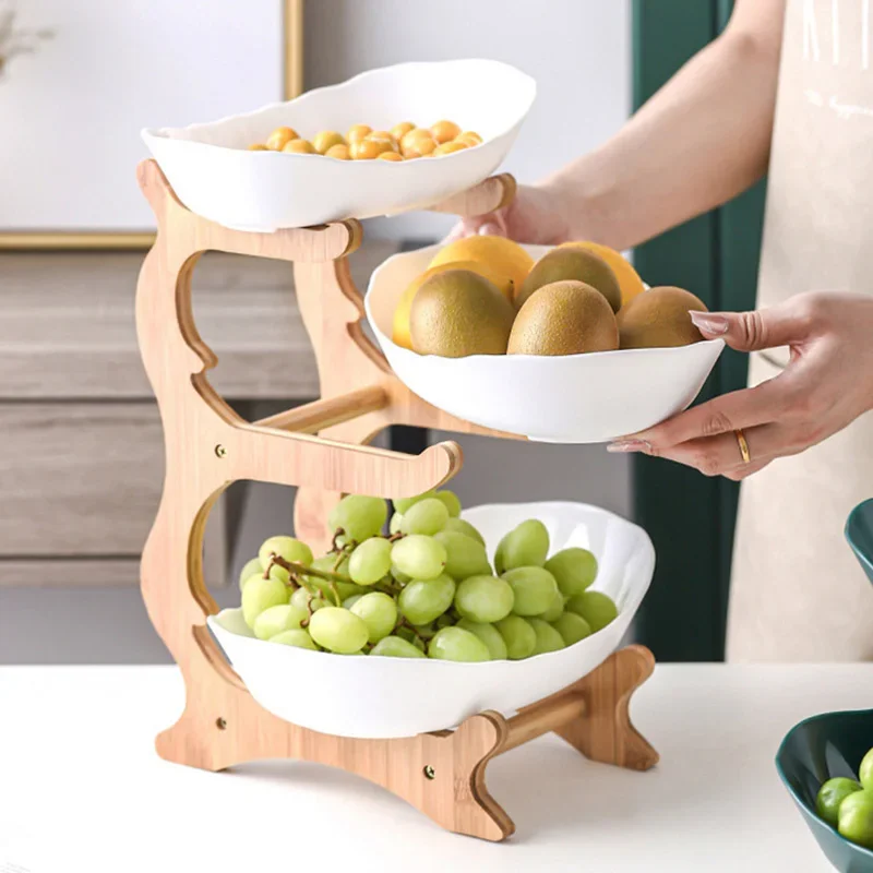 Díky dřevěné ovocné míse patrové získáte nejen praktický, ale i stylový doplněk pro vaši kuchyň. Už žádný nepořádek na stole – patrový stojan efektivně šetří místo a přehledně uspořádá ovoce, sladkosti nebo pečivo. Jeho pevná konstrukce a elegantní design zajistí dlouhou životnost a nadčasový vzhled. Navíc díky chytrému rozdělení snadno oddělíte různé druhy pochutin a vyhnete se míchání chutí.