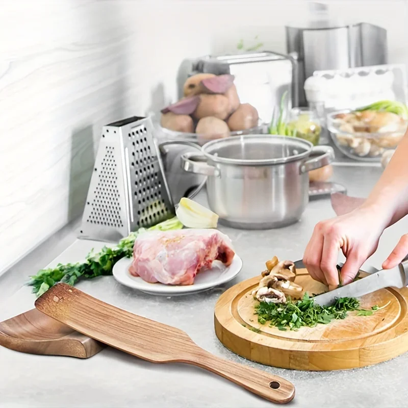 Se dřevěným držákem na vařečky a lžíce získáte jednoduché řešení, jak mít kuchyň vždy čistou. Už žádné kapky omáčky na lince nebo hledání, kam odložit kuchyňské náčiní. Tento praktický pomocník vám zajistí pořádek a pohodlí při vaření a vy se můžete soustředit jen na radost z přípravy jídla.