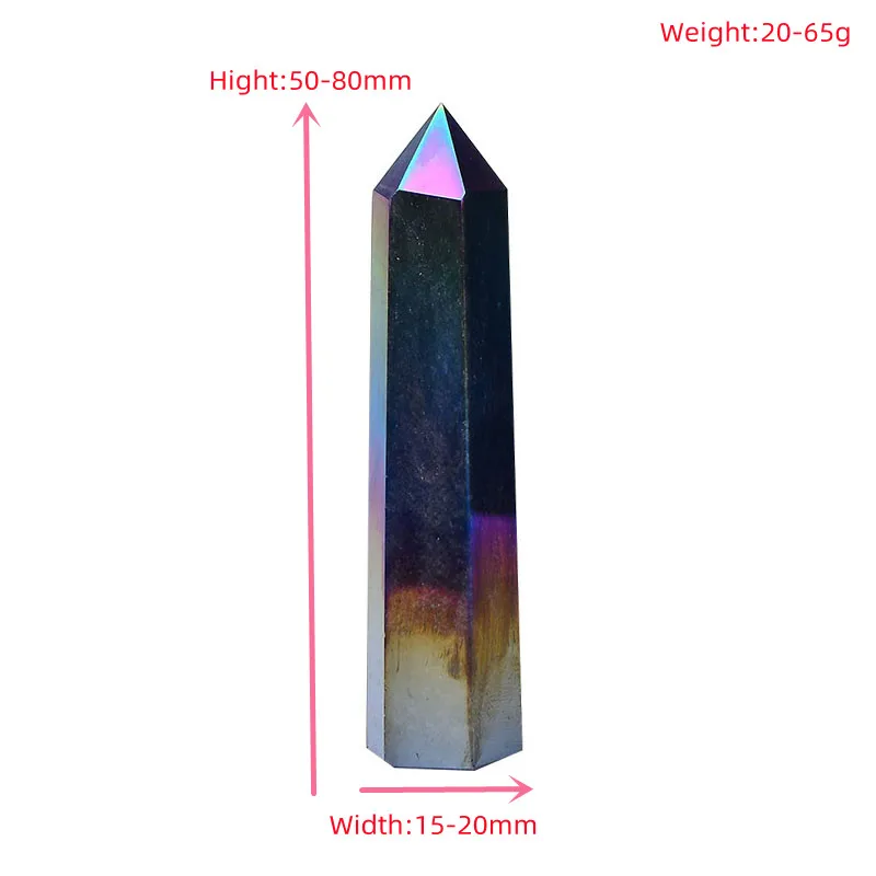 Nechte se okouzlit silou duhového obsidiánu, který je známý svou jedinečnou aurou a působivou energií. Tato precizně opracovaná křišťálová věž se skvěle hodí pro meditaci, reiki či jako elegantní ezoterická dekorace do vašeho domova. Díky svému přirozenému původu je každý kus originál. Už žádné nevýrazné dekorace – přiveďte do svého prostoru unikátní energii, která podpoří vaši pohodu!