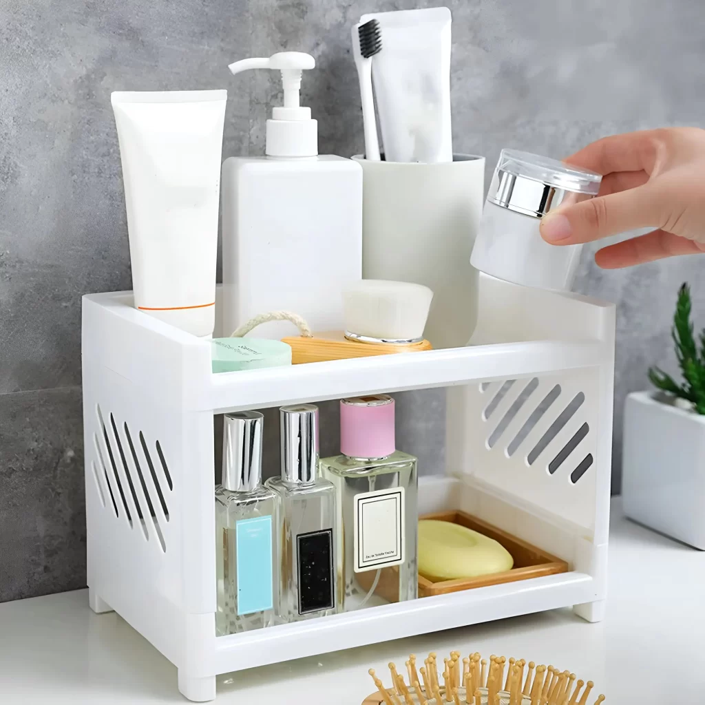 Praktický stolní organizér vám pomůže rychle najít všechny potřebné věci a zbaví vás chaosu na stole. Díky němu už nemusíte řešit nepřehledné hromady papírů či kosmetiky. Tento organizér s policí vám poskytne přehledné místo pro psací potřeby, kosmetiku i drobnosti a zajistí, že bude váš pracovní i kosmetický kout vždy uklizený.