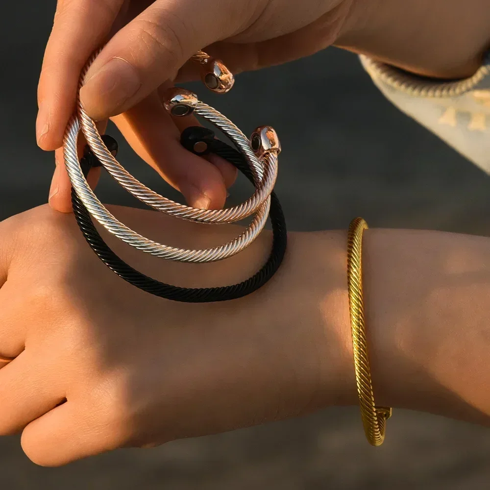 Elegantní řešení každodenní nepohody přináší tento magnetický a energetický doplněk, díky kterému získáte pohodlný šperk a zároveň eliminujete hledání jiných alternativ. Nemusíte řešit nepříjemné kovové otlaky ani těžké doplňky, protože náramek je lehký, příjemný a snadno se nosí. Je skvělý pro každodenní použití i jako dárek.