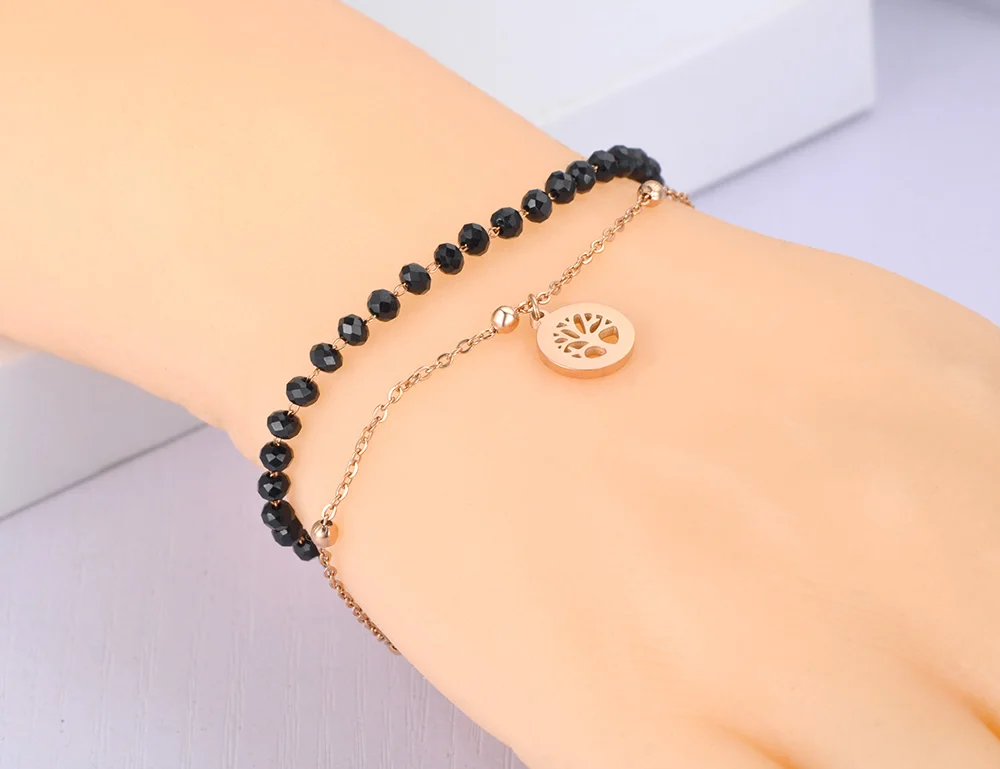 Dodá vašemu vzhledu eleganci a hlubší význam. S tímto elegantním náramkem a černým krystalem ve tvaru stromu nemusíte řešit obyčejné šperky bez emocí. Už žádné složité kombinování – vše ladí v sadě. Díky nerezové oceli se vyhnete rychlému opotřebení. Tento doplněk podtrhne vaši originalitu a osobní styl.