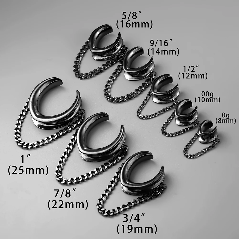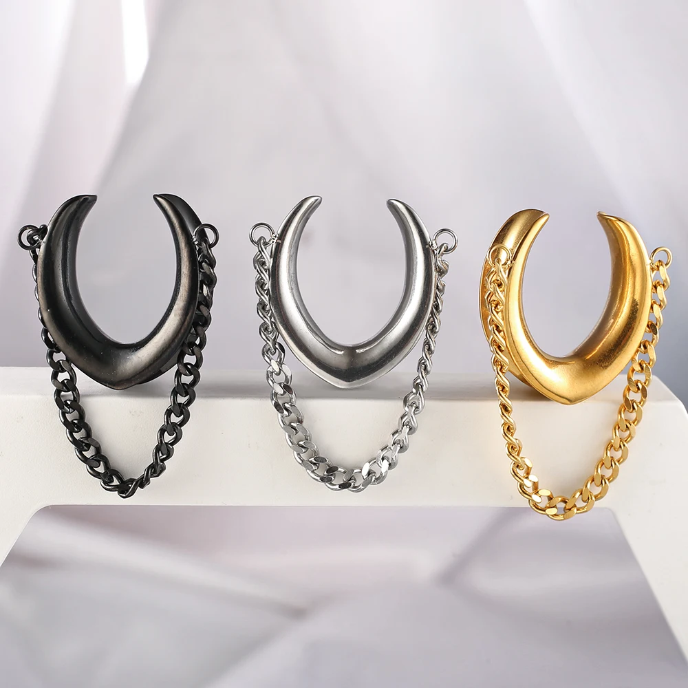 Získejte svůj styl ještě dnes a vylepšete vzhled svého piercingu elegantními ocelovými tunely s řetízkem.