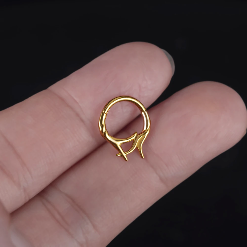 Tento septum kroužek z chirurgické oceli dodá vašemu stylu jedinečný vzhled a přitom je bezpečný i pro citlivou pokožku. Díky preciznímu zpracování se snadno nasazuje a drží pevně bez nepohodlí. Zapomeňte na podráždění, levné napodobeniny či ztrátu lesku – tento piercing kroužek vyniká dlouhou životností a elegantním vzhledem pro každý den.