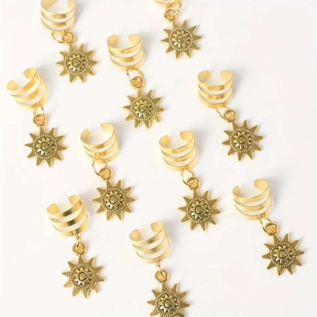 Díky elegantním vlasovým kroužkům se slunečnicí získají vaše pletené vlasy úplně nový styl. Už nemusíte řešit nudné účesy nebo složité zaplétání. S tímto zdobením vlasů snadno vytvoříte krásný účes během chvíle a bez zbytečné námahy. Elegantní vlasové kroužky perfektně drží, jsou lehké a pohodlné na nošení, takže si užijete krásný vzhled bez starostí.
