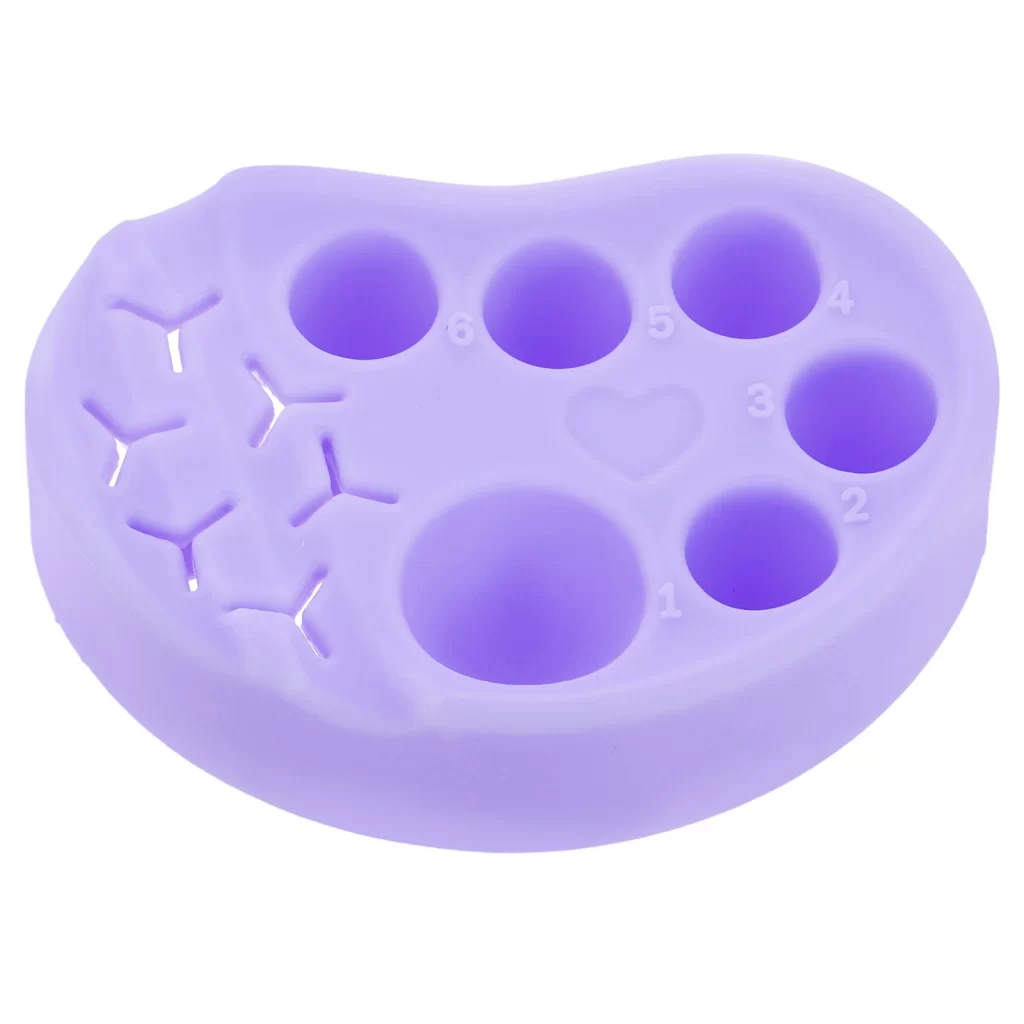 Tato fialová silikonová paleta vám umožní snadno míchat odstíny makeupu, laků na nehty či očních stínů a dosáhnout tak dokonalého výsledku. Díky ní už nemusíte řešit nepořádek na stole ani nepřesné barvy. Praktické řešení míchání barev vám ušetří čas a usnadní každodenní rutinu.