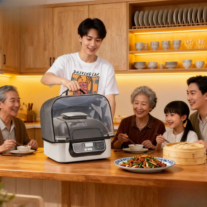 Tento ochranný potah pomáhá chránit kuchyňský spotřebič před prachem, stříkající vodou i běžným ušpiněním. Díky kapsám máte kartáčky a drobnosti hned po ruce, takže nemusíte řešit nepořádek, hledání příslušenství ani zdlouhavé čištění. Voděodolný obal navíc drží tvar a vypadá upraveně.