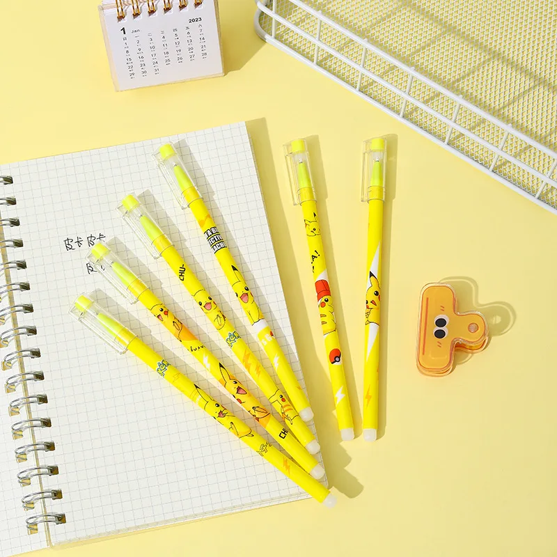 Sada gumovacích gelových per Pikachu vám přináší radost ze psaní bez stresu. Díky jemnému gelovému peru s černým inkoustem už nemusíte řešit nevzhledné škrty ani přepisování. Pero snadno vymažete a pokračujete dál, což ocení děti i dospělí. Skvělé psací potřeby pro školu i volný čas.