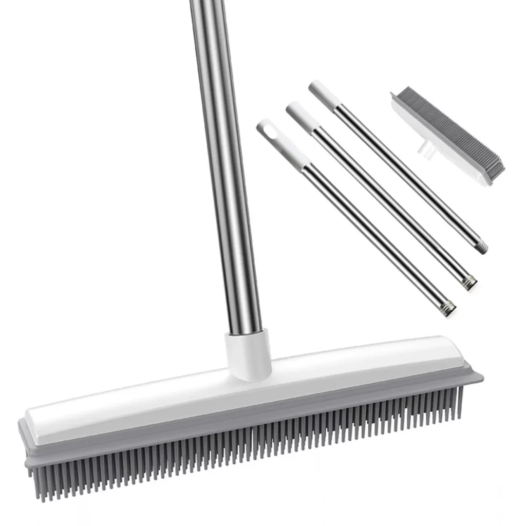 Tento gumový smeták s praktickou stěrkou a dlouhou rukojetí vám pomůže jednoduše odstranit z podlah i koberců chlupy domácích mazlíčků, prach a drobné nečistoty. Díky tomu už nemusíte řešit složité vysávání ani nepříjemné zbytky na podlaze. Snadné čištění a univerzální použití z něj dělají nepostradatelný doplněk každé domácnosti.
