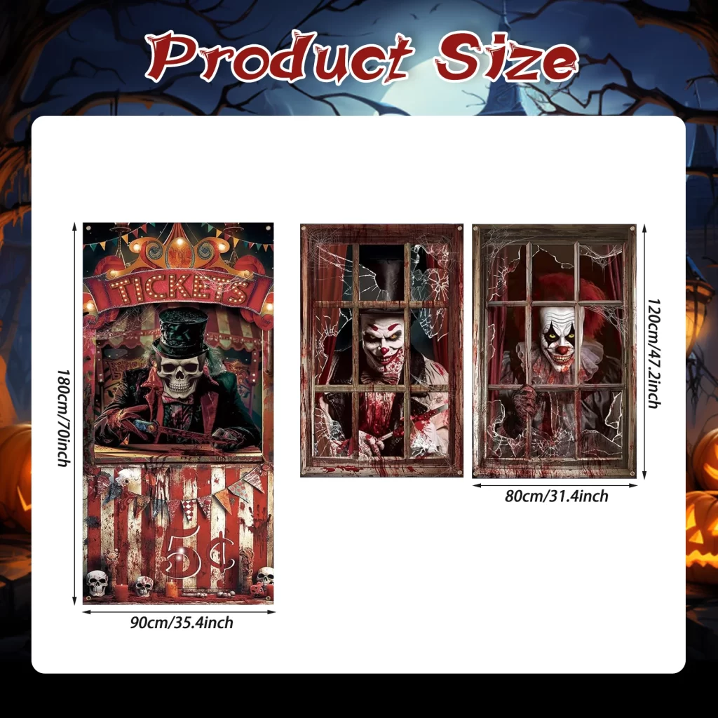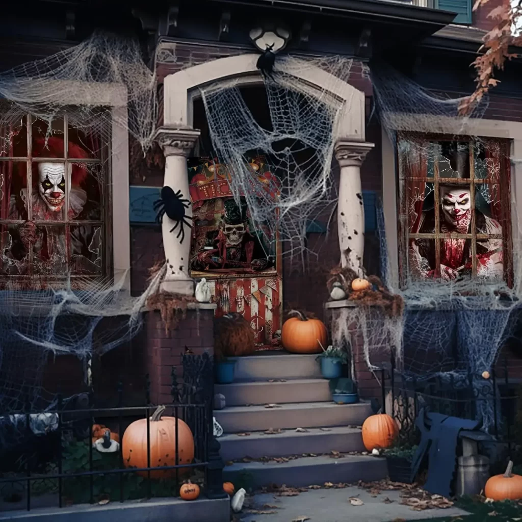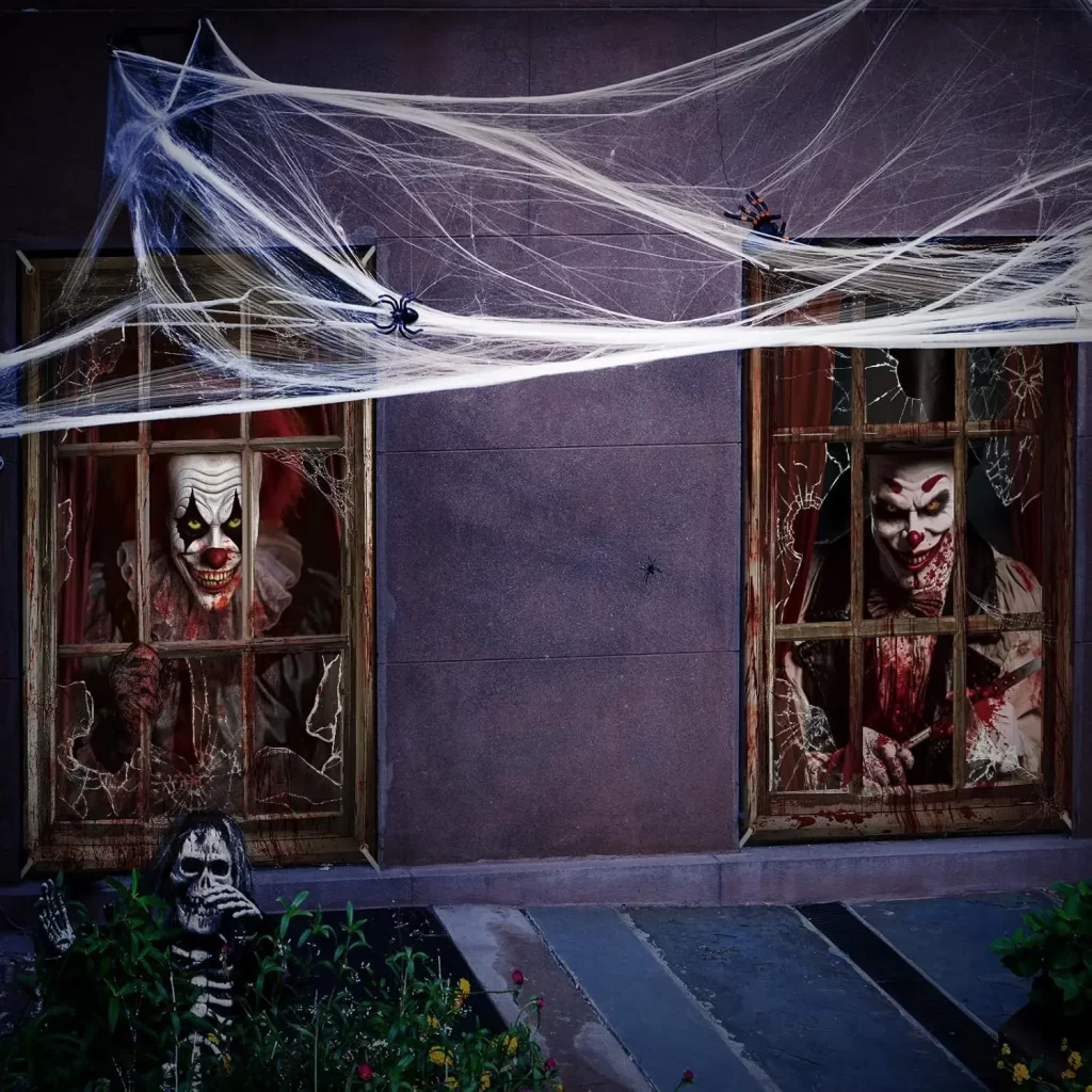 Chystáte párty a chcete okamžitě strašidelnou atmosféru? Tento set 3 kusů je halloween dekorace, která promění dekoraci okna i dekoraci dveří během chvilky. Nepotřebujete barvy ani nepořádek, jen zavěsíte a hotovo. Motivy klauna, ducha a lebky jsou vidět už z dálky a vše po akci snadno složíte.