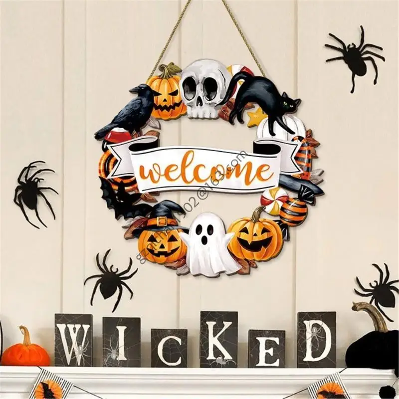 Tento dřevěný věnec vyřeší jednoduchou a rychlou halloween výzdobu bez složité instalace. Nemusíte řešit nevýrazné dekorace ani krátkou životnost. Závěsná dekorace se snadno umístí na dveře či zeď a okamžitě vytvoří výraznou atmosféru, která potěší vás i návštěvy.
