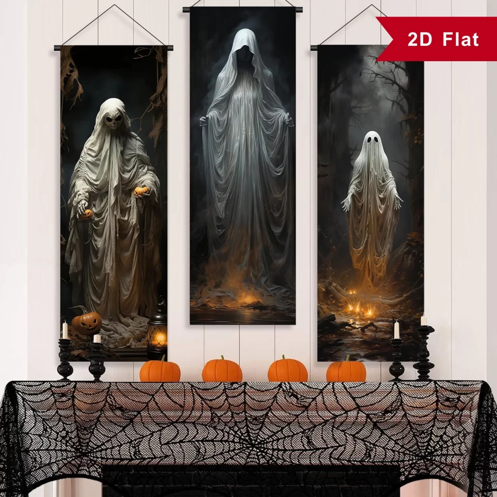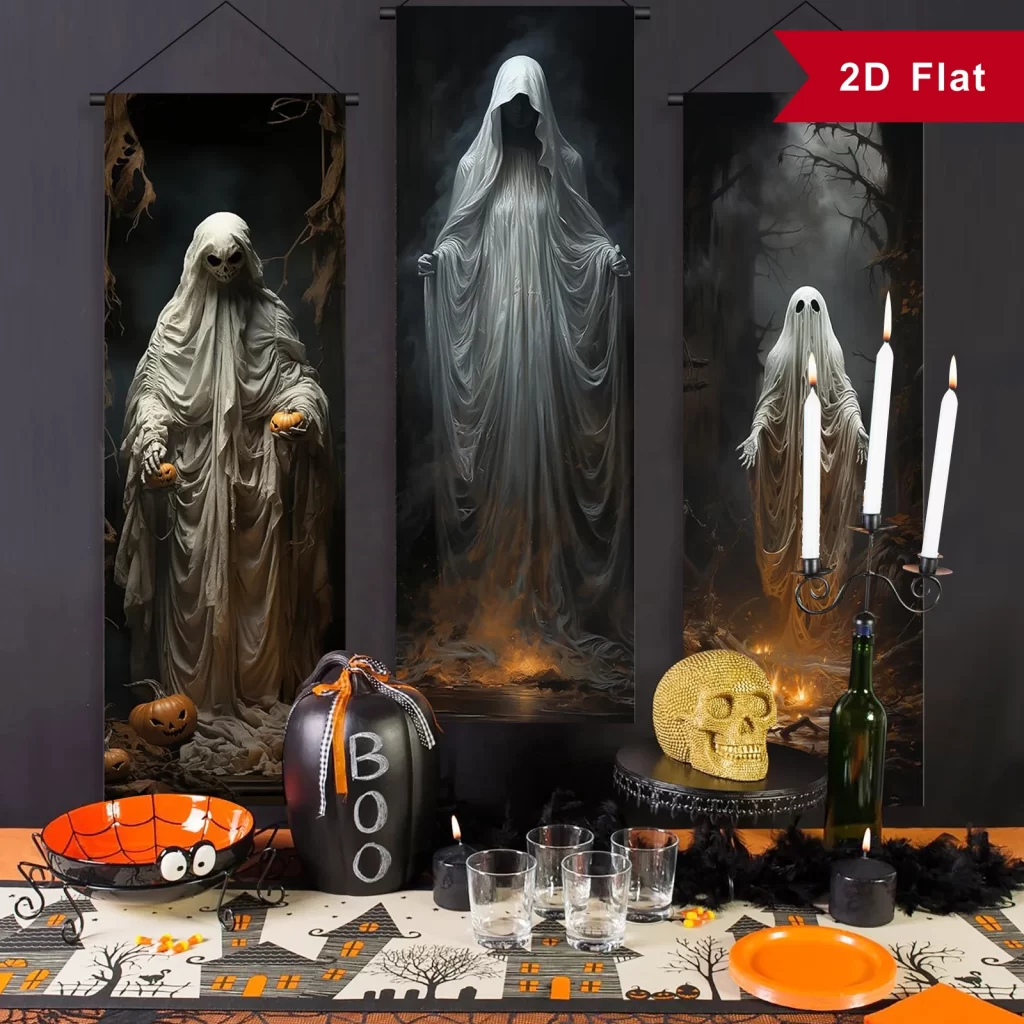 Tento halloweenský banner okamžitě vyřeší prázdné stěny a nudný prostor během svátků. Díky výrazným motivům kostry a ducha získáte halloween dekorace, které upoutají pozornost bez složité instalace. Nemusíte řešit složité skládání ani slabý efekt, halloween výzdoba působí výrazně hned po zavěšení.