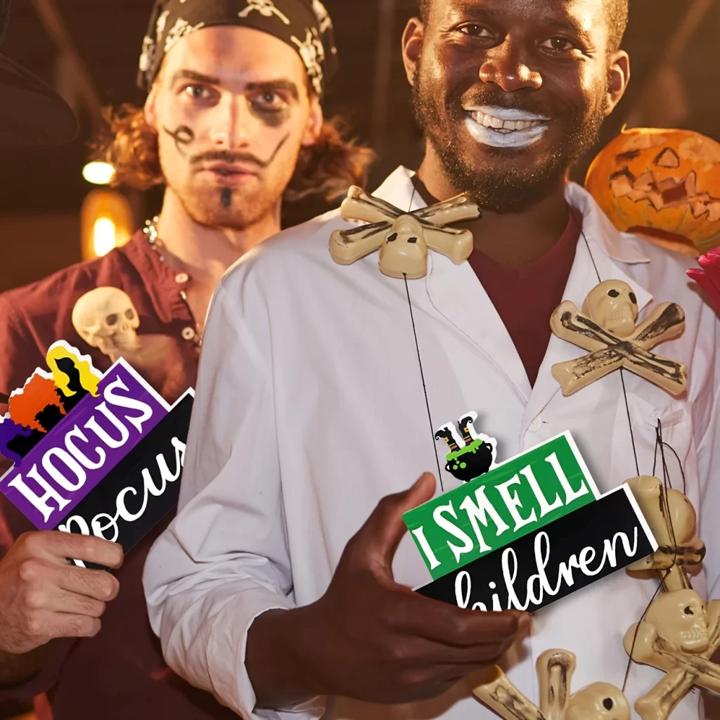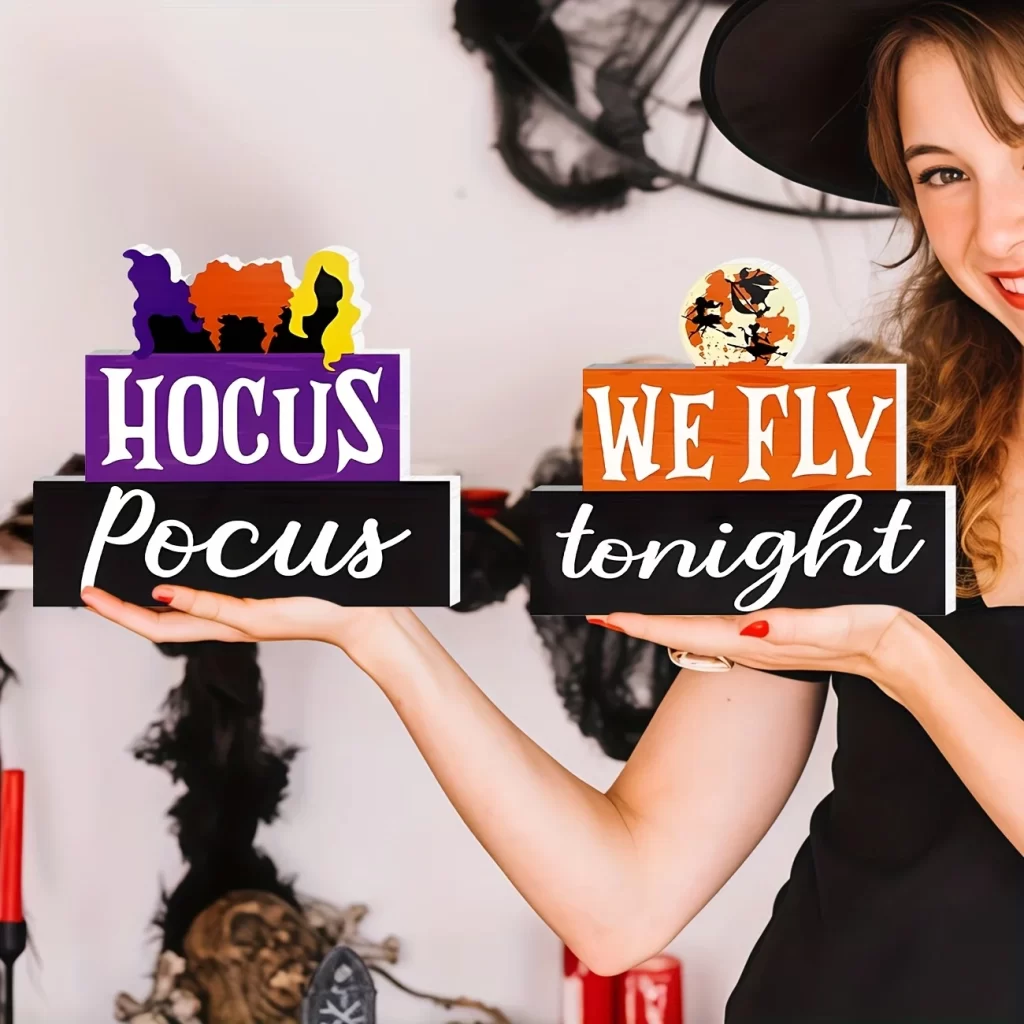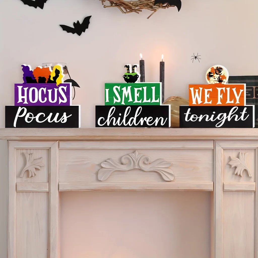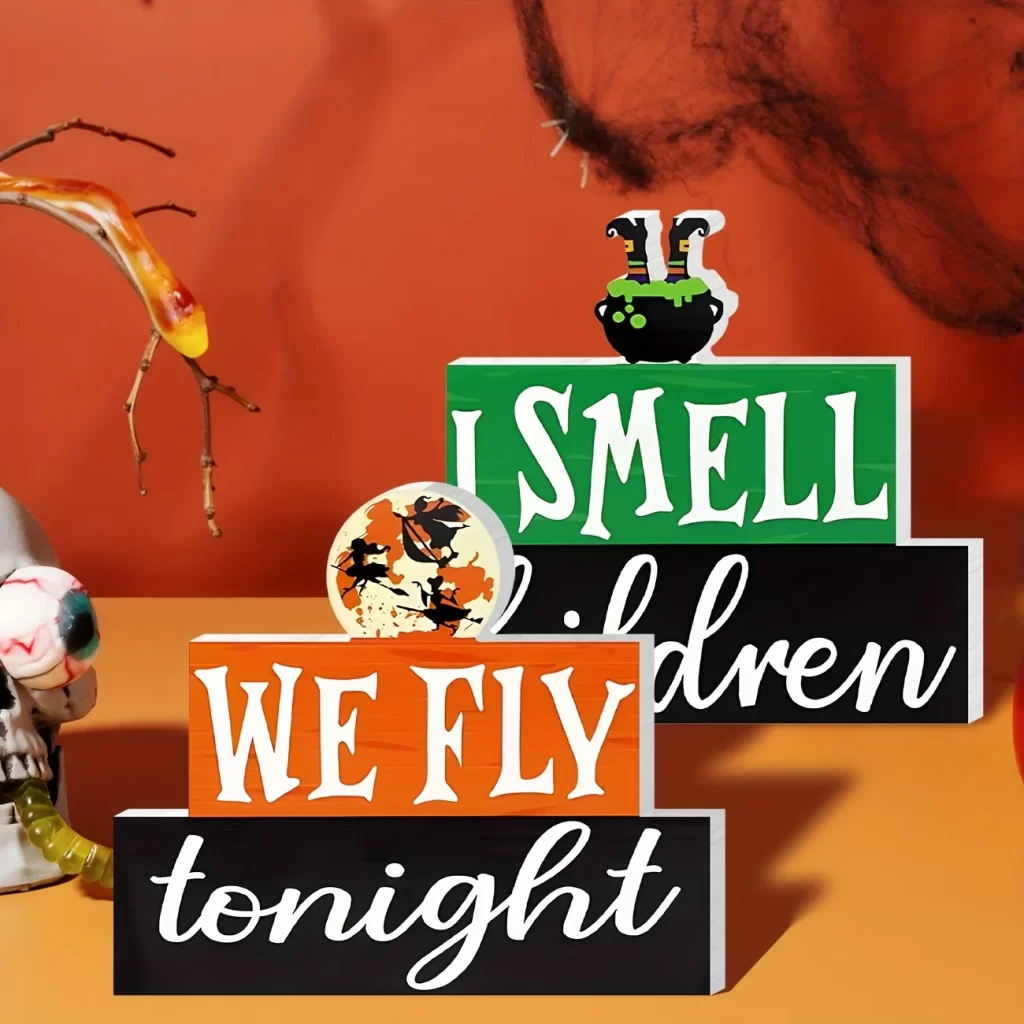 Tato dřevěná dekorace okamžitě promění stůl, polici i krbovou římsu v tematickou halloween výzdobu. Vyřeší problém prázdného prostoru a ušetří čas s aranžováním, protože vše spolu ladí. Nemusíš řešit složité zdobení ani křehké doplňky, stačí dekoraci postavit a užívat si atmosféru podzimní výzdoby.