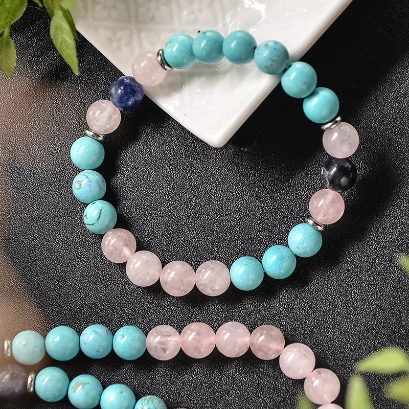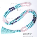 Tento jedinečný korálkový náhrdelník z modrého tyrkysu, růženínu a sodalitu je ideální pro meditace, jógu i každodenní nošení. Díky němu zažijete harmonii a klid během stresujících dnů. Už nemusíte hledat dokonalý doplněk, který bude nejen krásný, ale také praktický. Vytvořte si prostor pro relaxaci a pozitivní energii díky tomuto elegantnímu náhrdelníku.