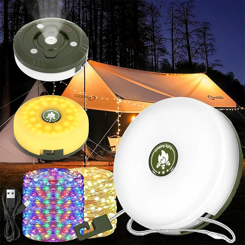 Kempingové světlo se světelným řetězem vám pomůže rychle osvětlit stan, zahradu i posezení a zároveň vytvoří příjemnou náladu. Díky dobíjení, magnetu a odolnosti proti dešti nemusíte řešit složité upevnění, tmu ani hledání zásuvky. Praktické venkovní osvětlení i na cesty.