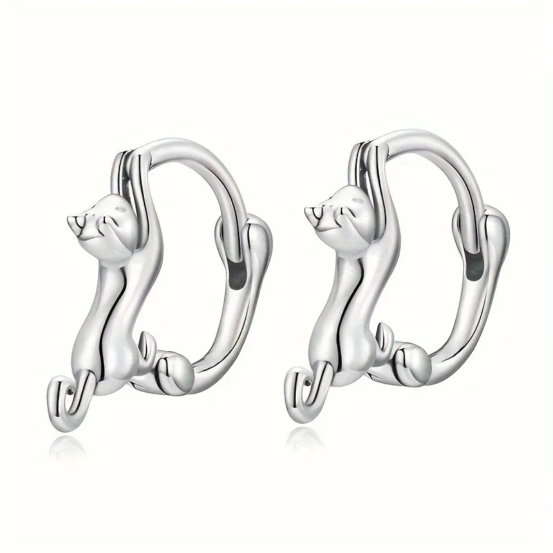 1 pár kočičích kruhových náušnic ve stříbrné barvě