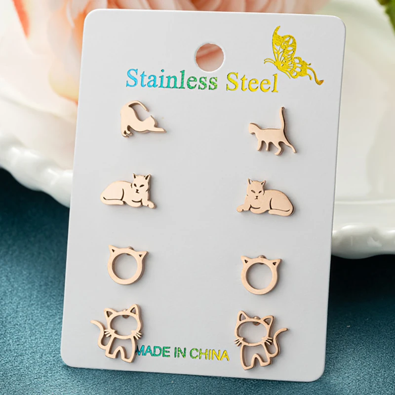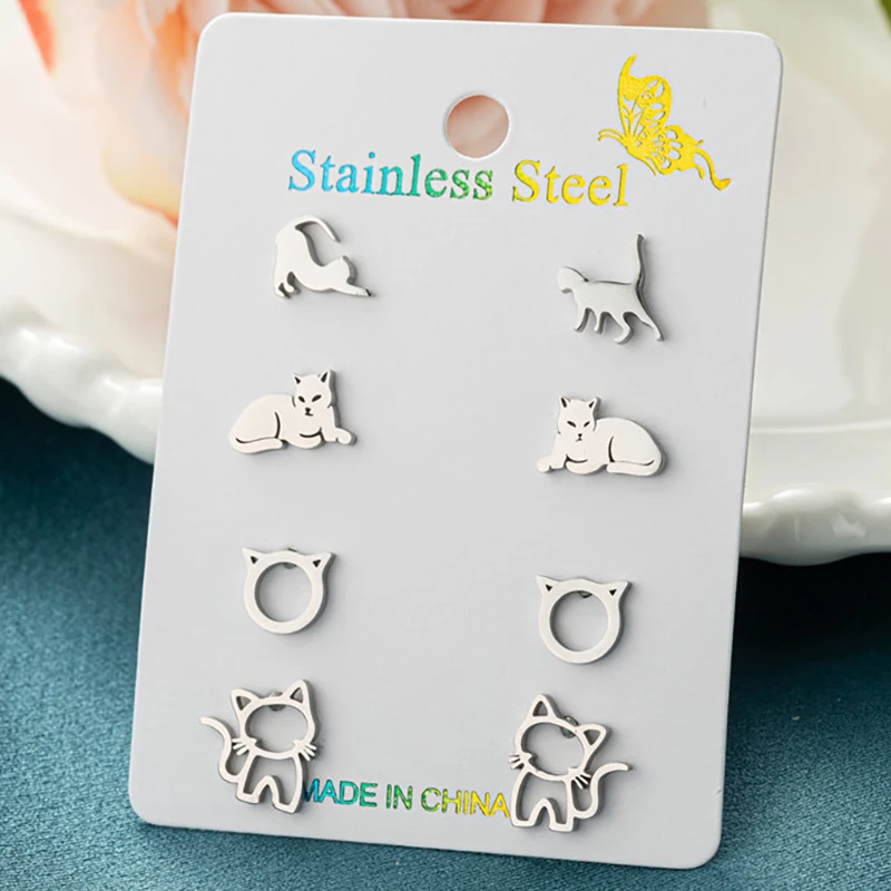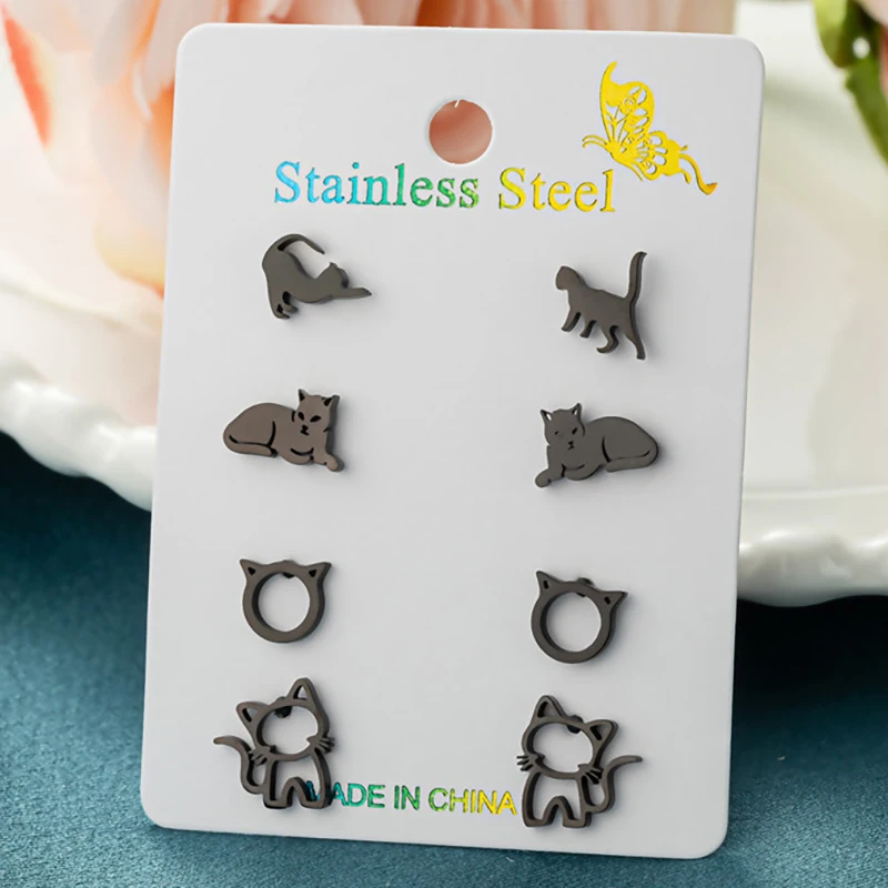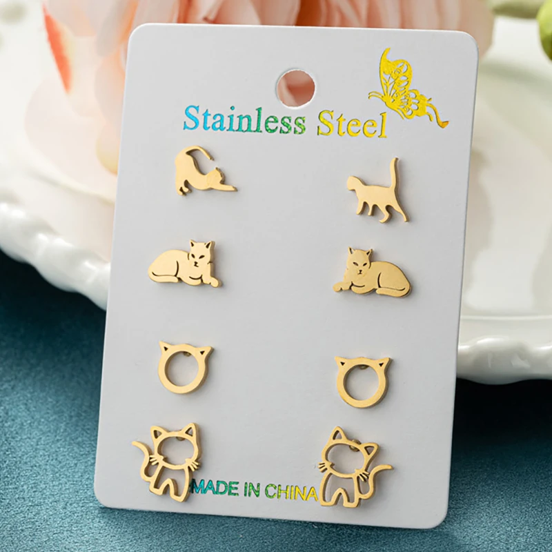 4 páry kočičích náušnic z chirurgické oceli (různé barvy).