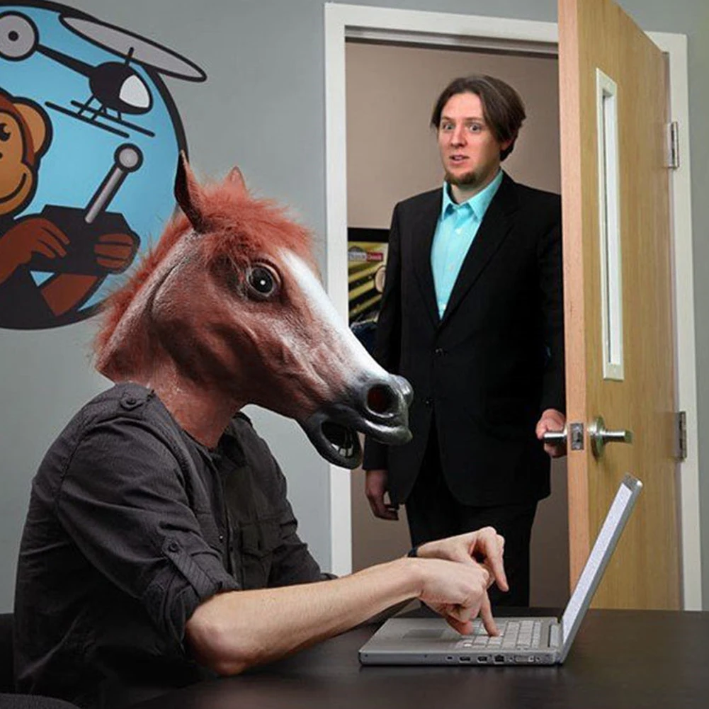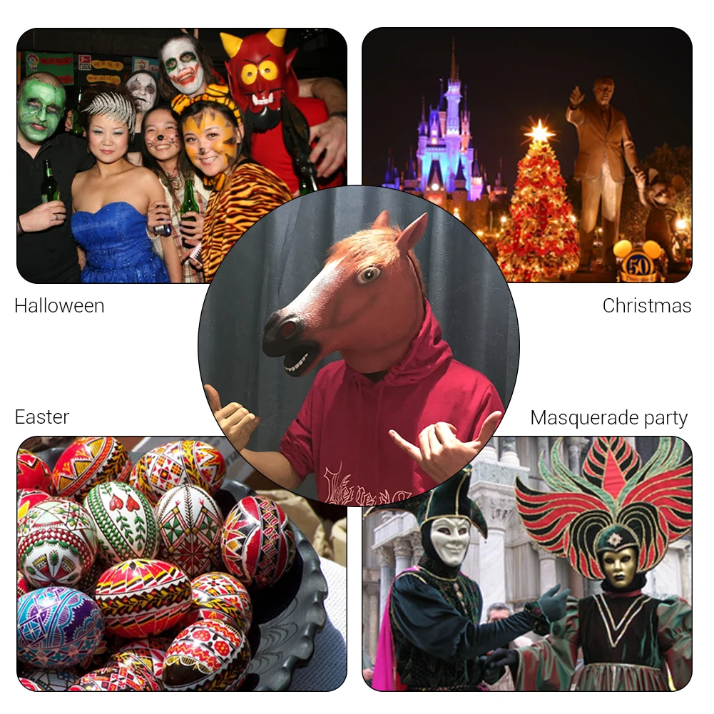 S touto koňskou hlavou v podobě latexové masky už nebudete řešit nudné převleky. Díky halloweenské masce si zajistíte nezapomenutelný vzhled, který přitáhne pozornost a rozesměje vaše přátele. Snadno vyřešíte otázku originálního kostýmu a už se nemusíte bát, že budete působit obyčejně.