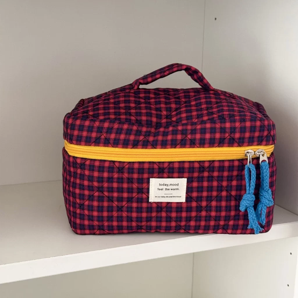 Zapomeňte na rozházenou kosmetiku v kufru. Stylová kostkovaná taštička udrží vše pohromadě, ať už jste na výletě nebo u přespání u kamarádky. Díky ní už nemusíte řešit hledání rtěnky, zrcátka nebo parfému – vše má své místo a je vždy po ruce.