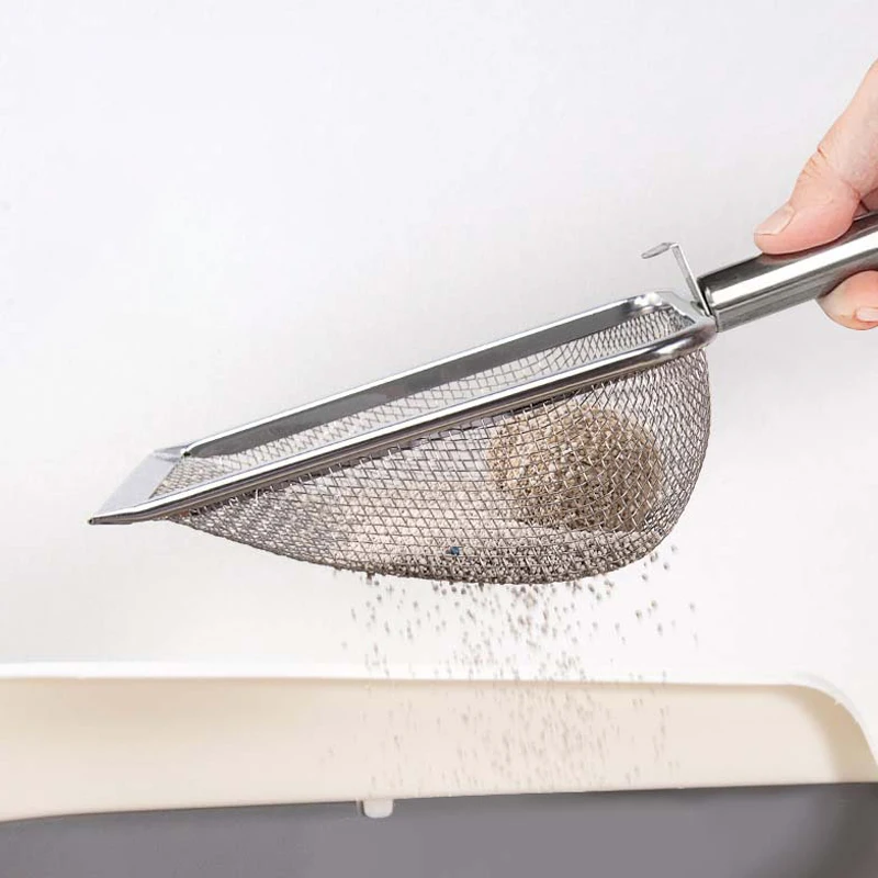 Se kovovou síťovou lopatkou na kočkolit snadno vyřešíte problém se zdlouhavým úklidem kočičí toalety. Díky chytrému designu už nemusíte řešit zbytečné plýtvání stelivem, bolest ruky při dlouhém používání ani špinavé uložení lopatky. Tento praktický pomocník vám zajistí čistotu a pohodlí při péči o vaše kočky.