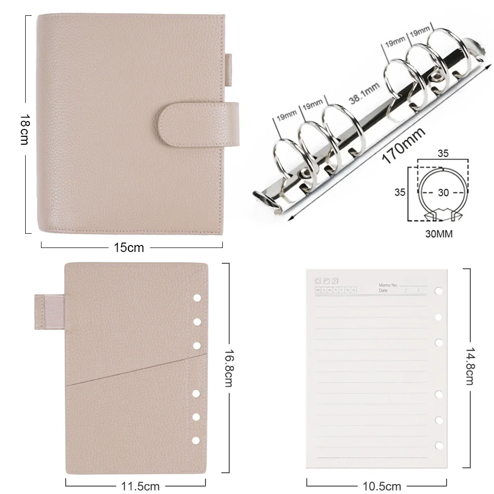 – Kožený plánovací diář A6 s kroužkovou vazbou