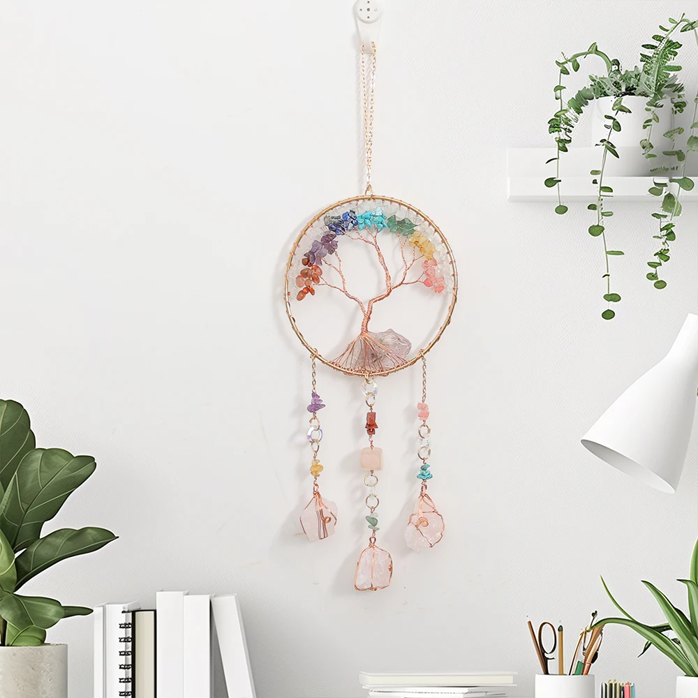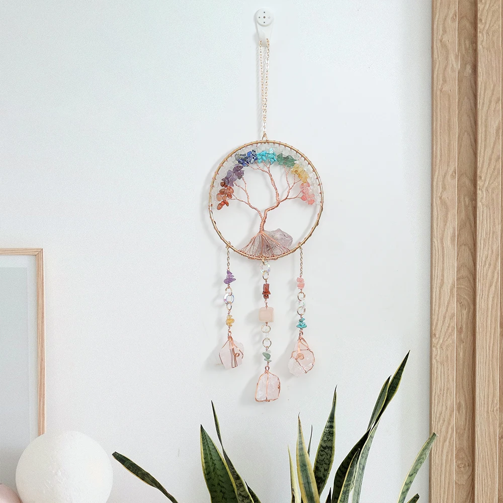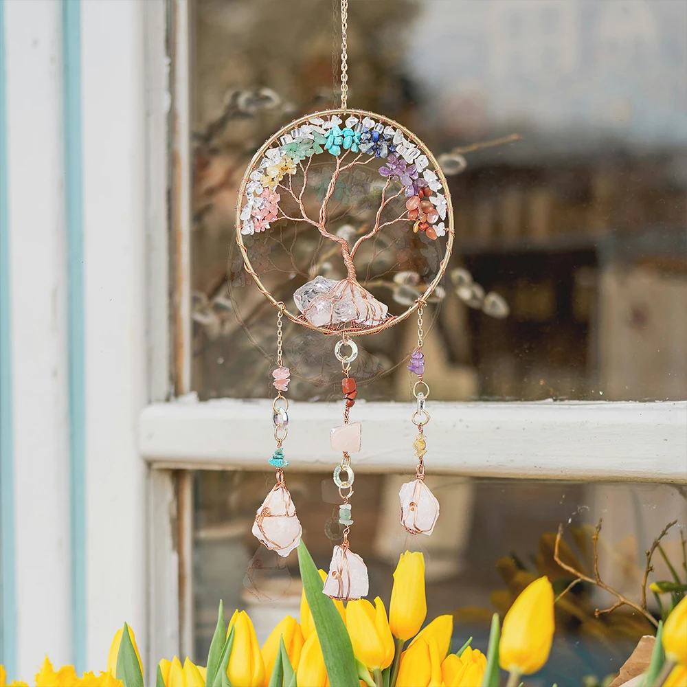 1x Lapač snů z krystalů a motivem stromu života