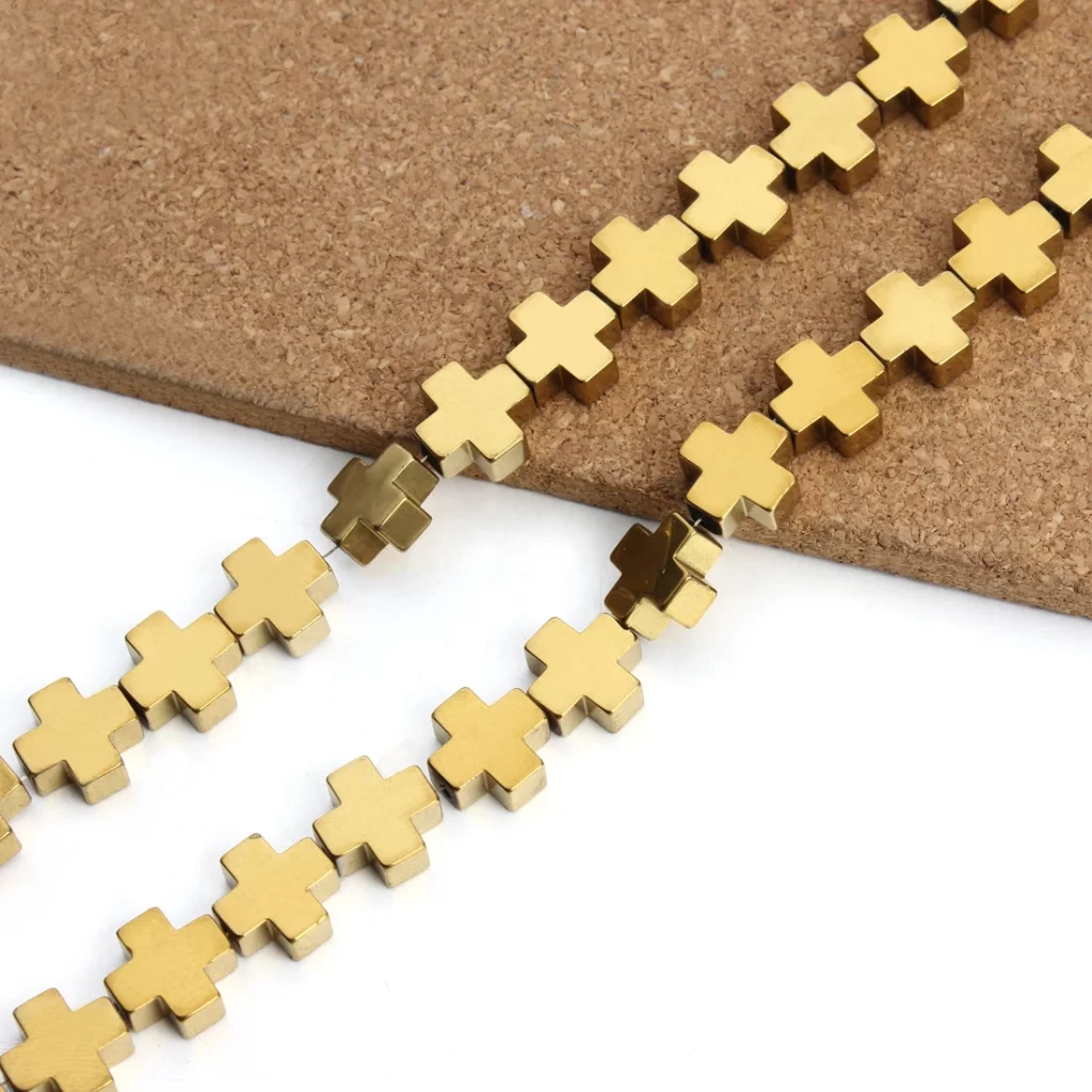 Křížové barevné hematitové korálky zlaté pomohou vytvořit originální náramky i náhrdelníky bez složitého ladění barev. Díky nim nemusíte řešit nevýrazné doplňky ani omezený výběr odstínů. Snadné tvoření a široká variabilita zajistí, že každý šperk bude harmonizující a jedinečný.