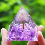 Tato orgonitová pyramida z přírodního ametystu a peridotu přináší do prostoru energii a harmonii, díky které se budete cítit klidněji. Už nemusíte řešit prázdný a chladný interiér, protože krásná pokojová dekorace v podobě pyramidy vyřeší nedostatek atmosféry a podtrhne jedinečný styl vašeho domova.