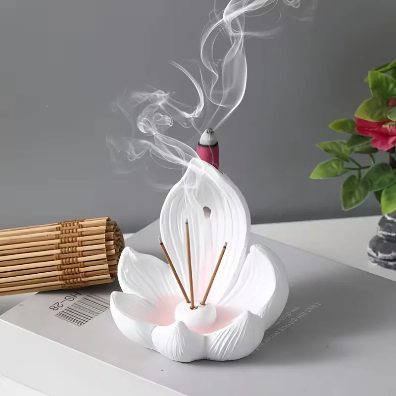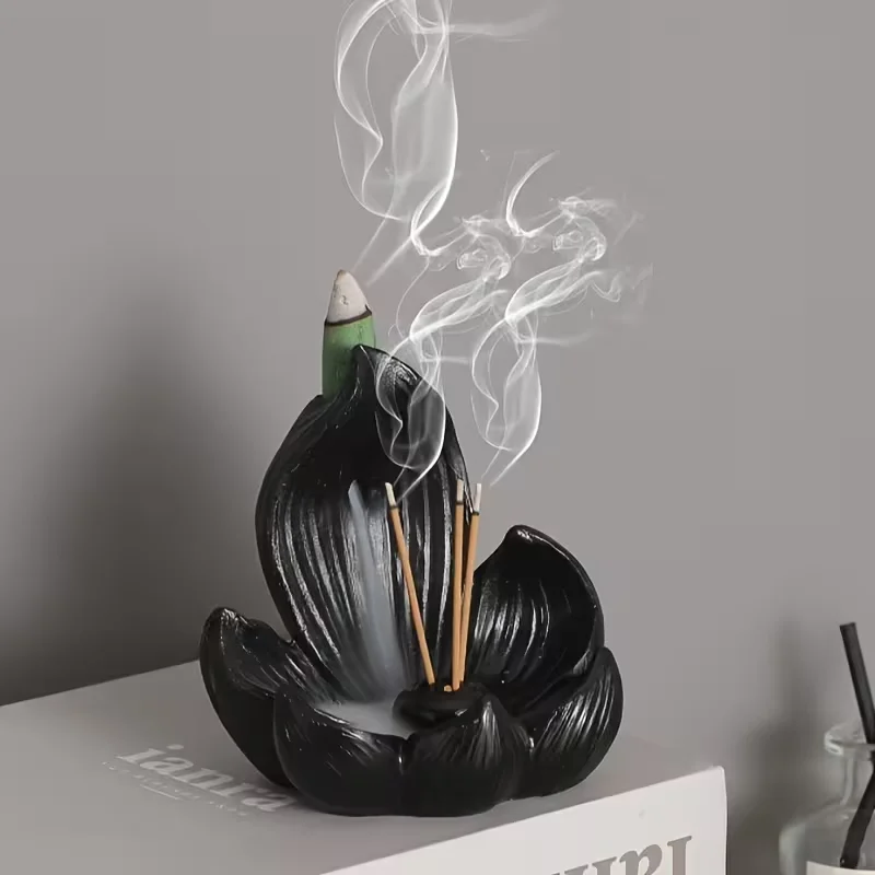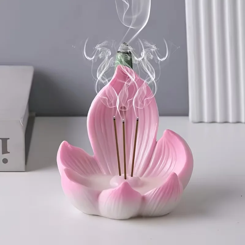 Tento lotosový stojan na vonné kužely zkrášlí poličku, stolek i meditační kout. Pomůže vytvořit útulnou vůni, jemný tekoucí dým a dekoraci v jednom, takže nemusíte řešit nudný prostor ani složité doplňky.