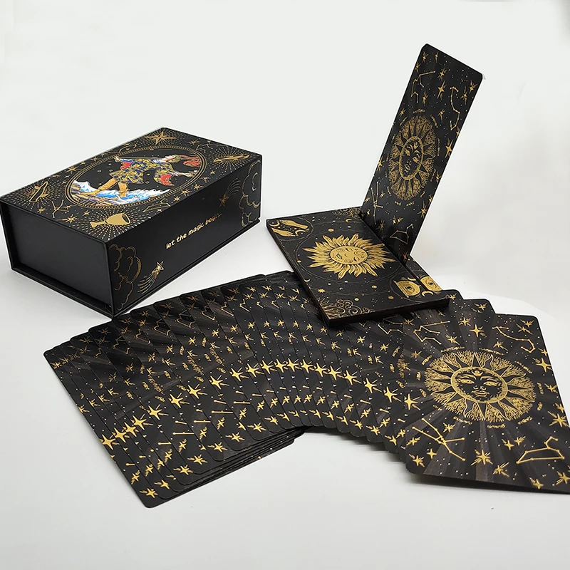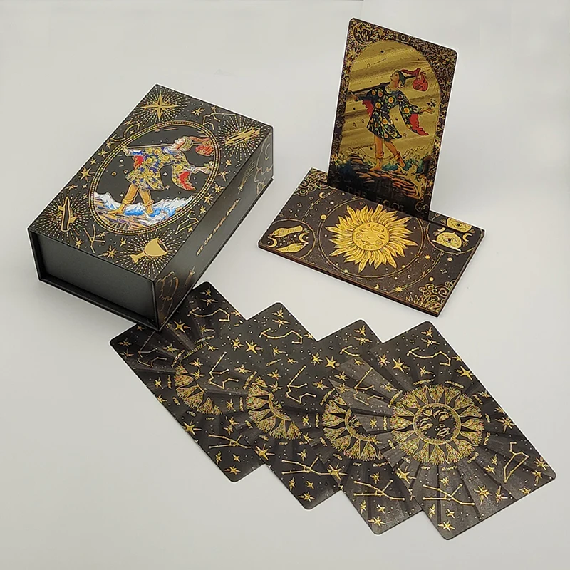 Se sadou budou tarotové karty pevné, čitelné a příjemné na dotek. Karty jsou voděodolné a herní set doplňuje stabilní stojánek, takže neřešíte klouzání ani ohýbání. Pro výklady z věšteckých karet bez zbytečného boje. Snadné míchání a čisté rozložení.