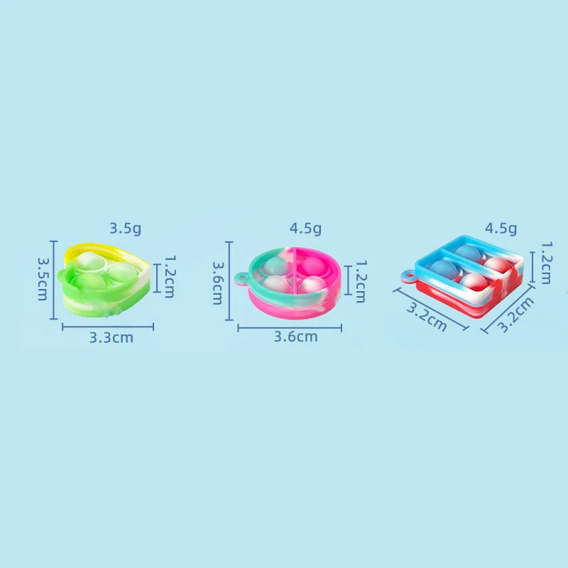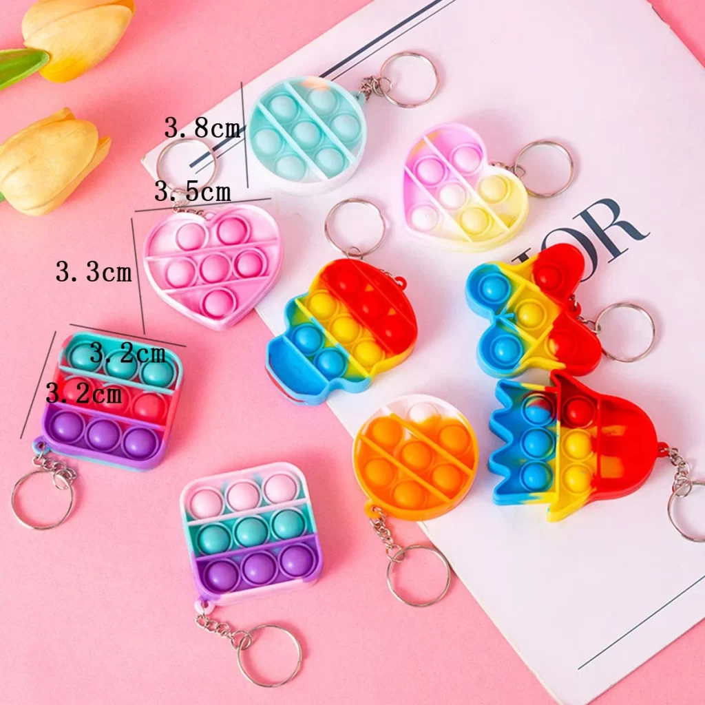 20x mini pop klíčenka ve veselých barvách a různých tvarech